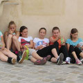 Stadtführung durch Graz, sie waren im Zeughaus und bestiegen den Schlossberg. Sie spannen Wolle, webten, filzten und tanzten zu höfischen Klängen. Außerdem wurden mittelalterliche Spiele