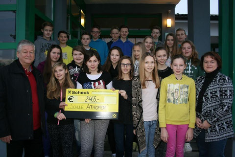 Gleinstätten waren mit großen Einsatz dabei, so konnte Peter Krasser von den SchülerInnen, Religionslehrerin Veronika Tockner und Dir. Christian Lind ein Scheck mit der stolzen Summe von €