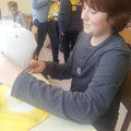 Jetzt bekommen Bob, Kevin und Stuart Verstärkung, denn die 3. Klassen schneiderten sich in den Textilen Werkstunden ihren eigenen "Minion-Polster". Hier wurden nicht nur fertige farbige Stoffe verwendet, im Gegenteil, die Stoffe wurden zunächst sogar mit der Technik "Bindebatik" eingefärbt. Anschließend wurde nach eigenem Entwurf die Form zurechtgeschnitten und Details wie Augen und Latzhose appliziert. So ähnlich sich diese blau-gelben Männchen auch sehen, so hat doch jede Schülerin und jeder Schüler seinen ganz individuellen Minion entstehen lassen und sind sichtlich zufrieden mit ihren Werken.