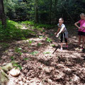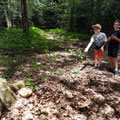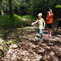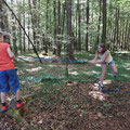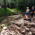 den Weg um unterschiedliche Stationen im Wald zu erkunden.