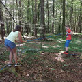 Bei der zweiten Station ging es darum im Team diverse Aufgaben zu lösen. Zum einen sollte ein Ei so gut mit Materialien aus dem Wald verpackt werden, um es im Anschluss ohne Beschädigung werfen