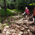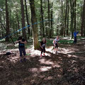 Bei der vierten Station ging es darum herauszufinden, welche Vielfalt an Spielen der Wald, den Kindern zu bieten hat. Hier wurden die Geschicklichkeit und Balance getestet beim Seilziehen auf