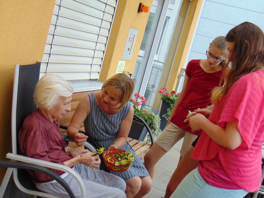 Frau Ully vermittelte uns die Möglichkeit das Pflegeheim in Wies zu besuchen. Eine kleine Gruppe Freiwilliger (Tobias Ully, Philipp Sicher, Sabrina Temmel, Elena Pirker, Julia Walzl, Julian
