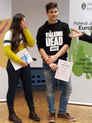 Julia Denisa Ciobanu, Muttersprache Rumänisch, erreichte bei diesem Bewerb mit ihrem selbst verfassten Text zum Thema „Mobbing“ den 2. Platz und schlug sich