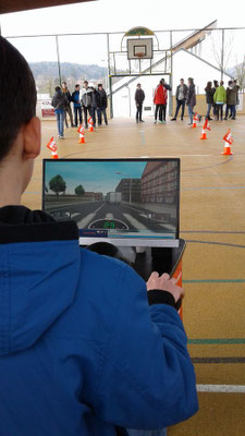 Überschlagsimulator und eine Rauschbrille von den SchülerInnen ausprobiert werden.