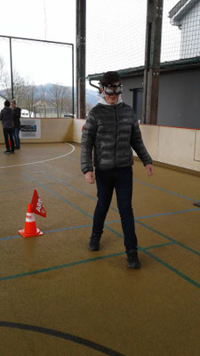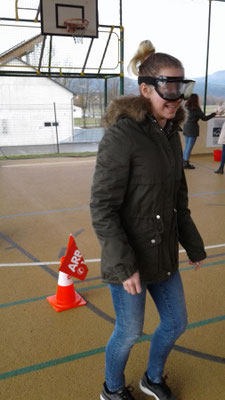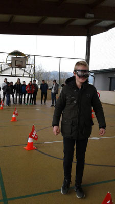 Die Rauschbrille simuliert den Zustand der Beeinträchtigung durch Alkohol oder andere gehirnbeeinflussende Substanzen ohne selbst getrunken zu haben. Mit der Brille konnte der Hindernisparcours
