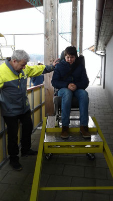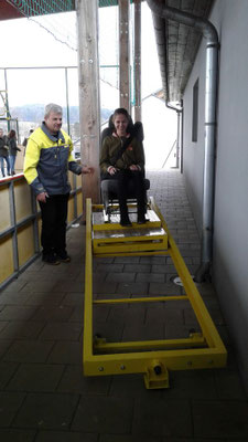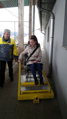 Die Notwendigkeit des Sicherheitsgurtes wurde mit dem Gurtschlitten demonstriert und von den SchülerInnen begeistert ausprobiert.