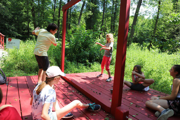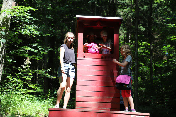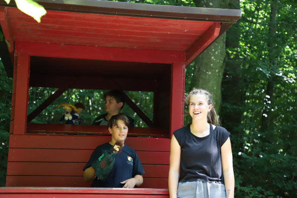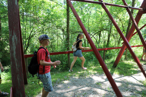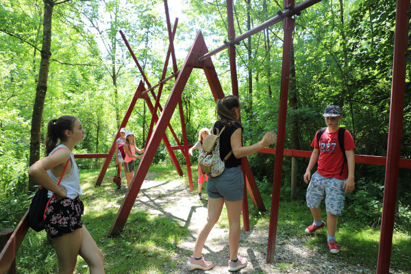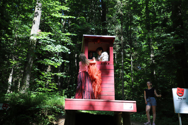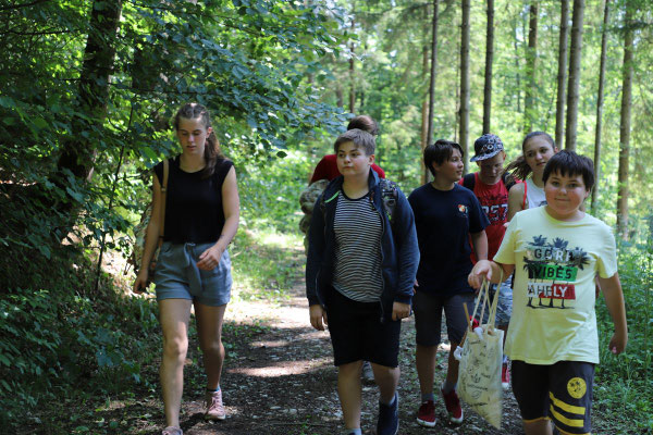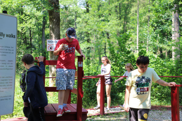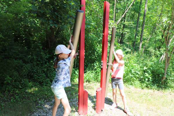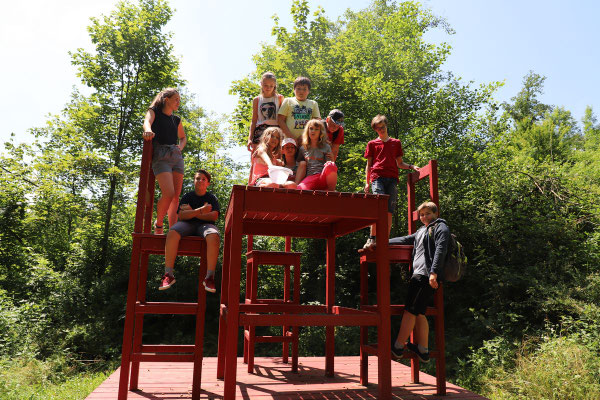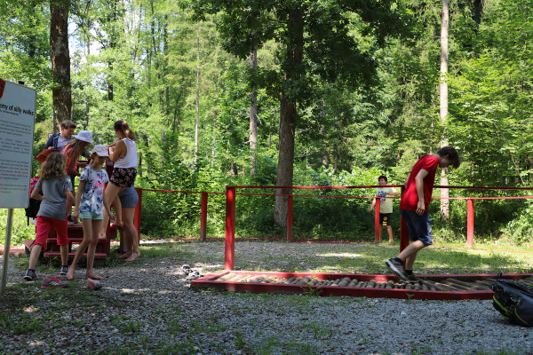 Trotz sengender Hitze hatten die Schüler/Innen der Schulspielgruppe beim Besuch des Theaterwegs in St. Josef viel Spaß beim Erkunden und Ausprobieren der verschiedenen Stationen.