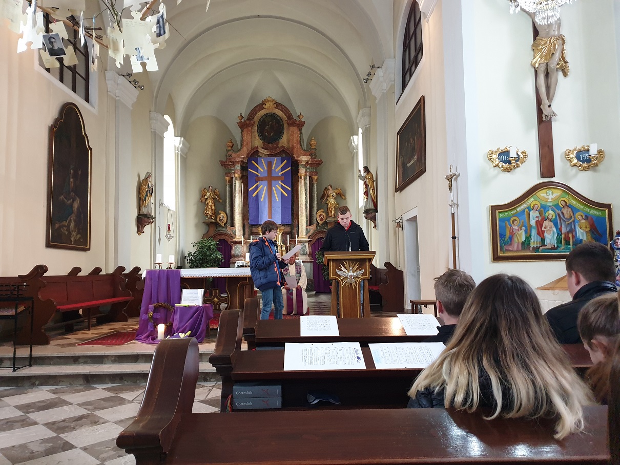 Am Donnerstag 31.03.20222 feierten die 1. und 3. Klassen gemeinsam in der Pfarrkirche Gleinstätten eine Bußfeier. Die beiden ersten Klassen sorgten für eine feierliche musikalische Gestaltung. Die Burschen und Mädchen der beiden 3. Klassen schrieben im Religionsunterricht Texte/Dialoge zum Thema Konflikte, Streit und Mobbing – jedoch immer mit einem positiven Ende. Dabei sind viele interessante Werke entstanden und aus jeder Klasse wurde in der Kirche ein Text vorgetragen.
