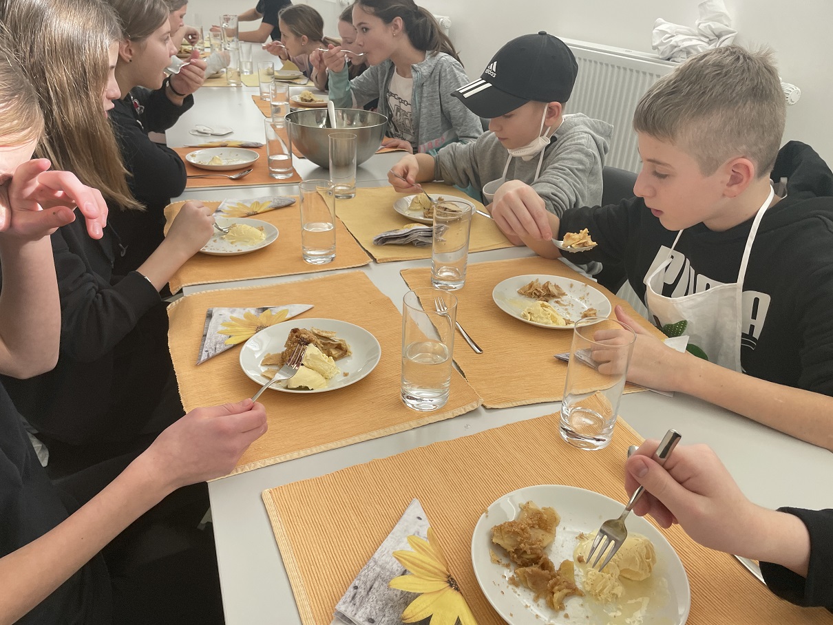 Schön, wenn Rezepte, welche schon zur Zeit der Habsburger zubereitet wurden, auch heute noch so gut ankommen. Dass solche Speisen gar nicht so schwer zuzubereiten sind und nicht vom Supermarkt fertig gekauft werden müssen, haben die SchülerInnen nun selbst erlebt und werden ihre Lieben am Wochenende vielleicht schon bald mit einem pikanten oder süßen Strudel verwöhnen.