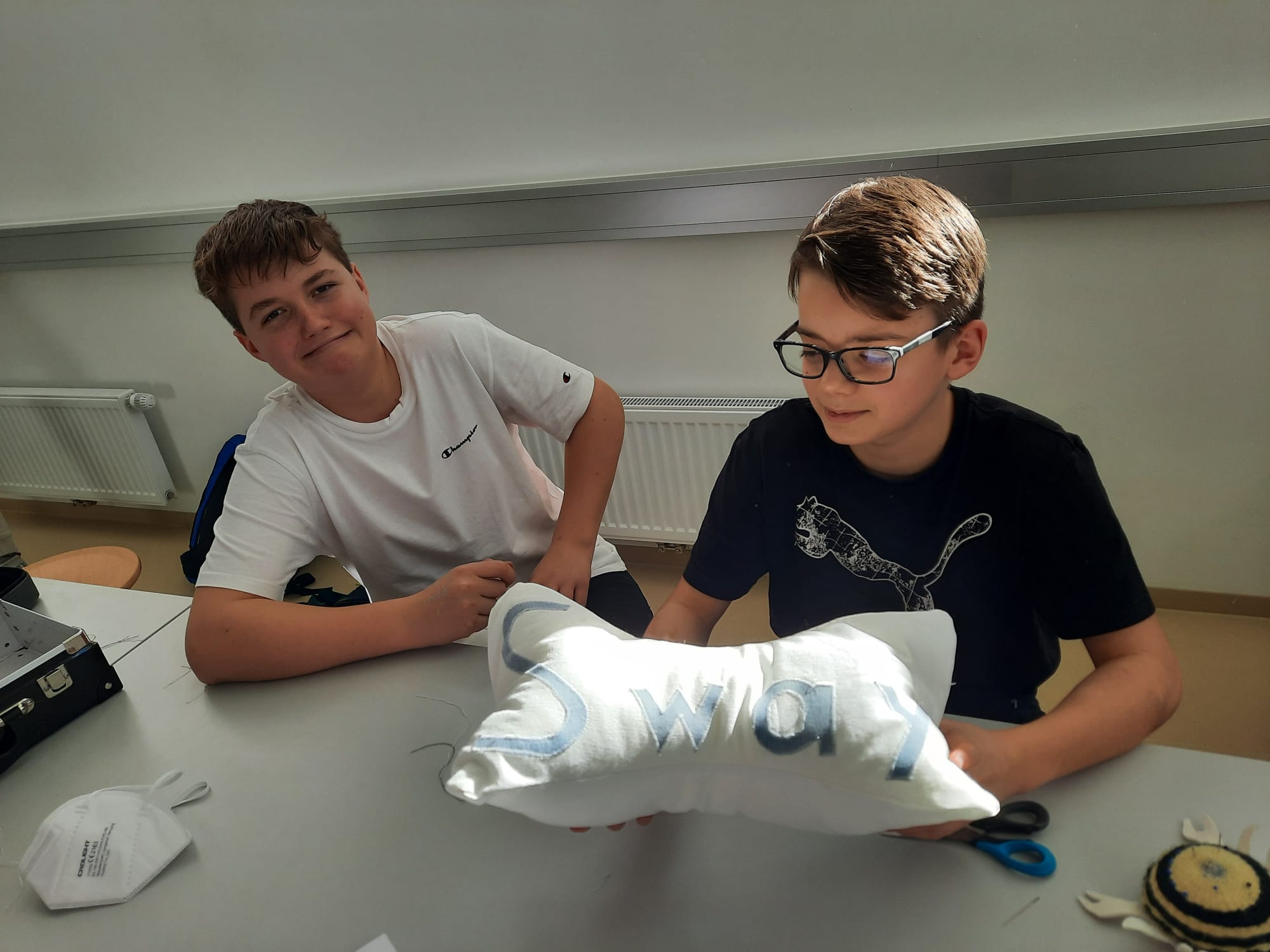 Die Viertklässler der Mittelschule Gleinstätten freuen sich schon auf ein entspanntes Lesen mit ihrem selbst genähten Leseknochen.