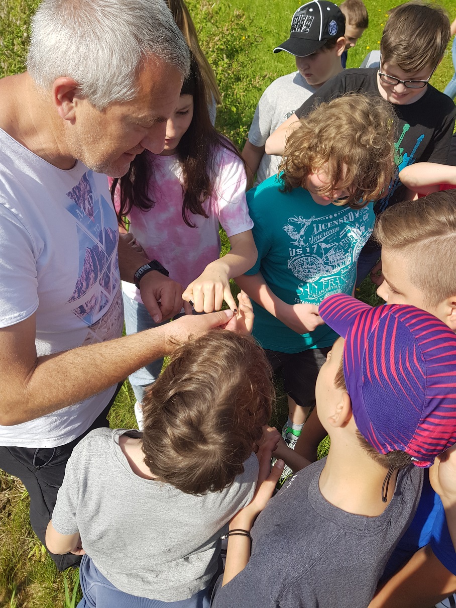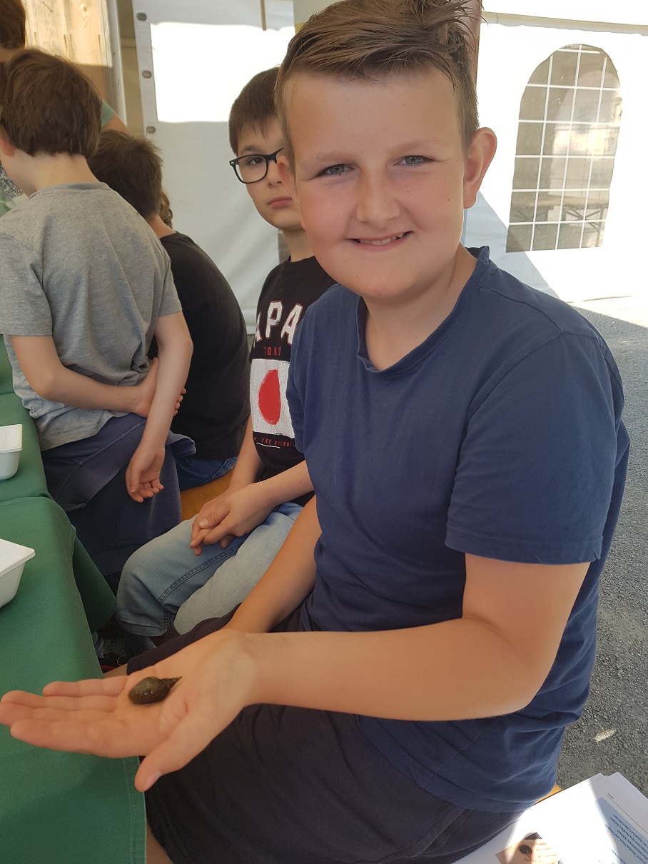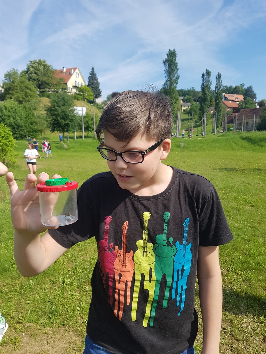 An verschiedenen Stationen wurden Insekten und Spinnen gesammelt, Schnecken und Flusskrebse beobachten, ein Bienenhaus besucht, Wildtiere bestimmt, einen Geschichtenerzähler gelauscht und die Bedeutung des Regenwaldes nähergebracht.