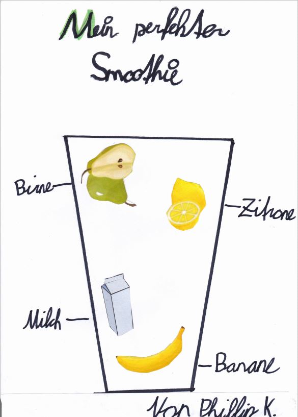 Und so gestalteten unsere SchülerInnen zunächst ihren perfekten Smoothie mit ihren Lieblingszutaten auf Papier und dann ging es ans praktische Arbeiten. Jeder konnte sich die Zutaten selbst