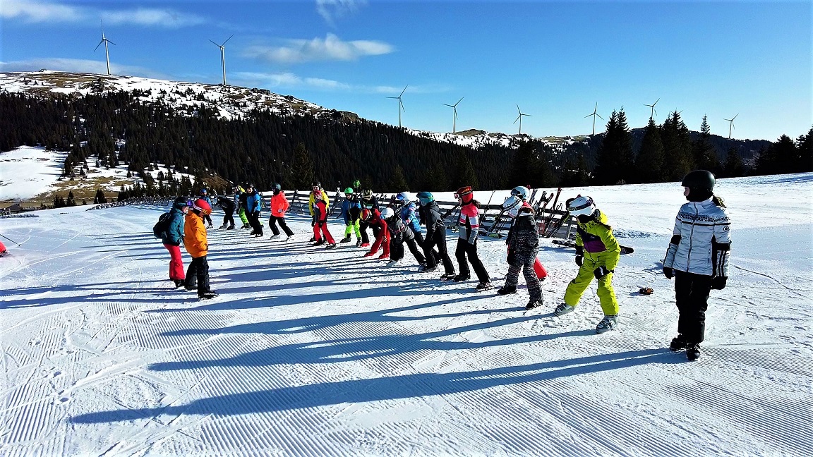 Nach langem Warten war es nun endlich soweit: Die 2. und 3. Klassen der MS Gleinstätten konnten einen perfekten Schitag auf der Weinebene verbringen. Bei strahlend blauem Himmel und frühlingshaften Temperaturen schlug das Schifahrerherz höher. Die anfängliche Nervosität mancher Schülerinnen und Schüler legte sich aber bereits nach den ersten Schwüngen und so konnten auch diejenigen das Schifahren erlernen, die bisher noch nie auf „2 Brettln“ unterwegs waren.