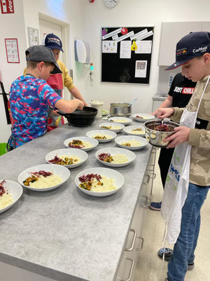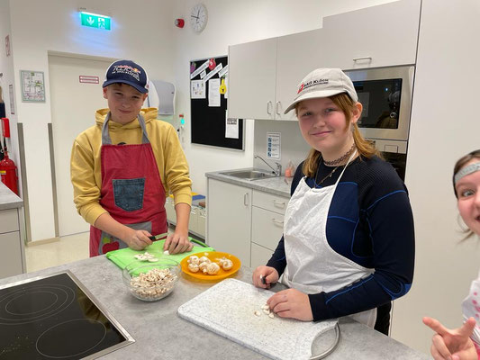 Bewusstes Essen und Genießen waren ebenso am Stundenplan, wie gemeinsames Kochen. Natürlich durfte auch der sportliche Aspekt nicht fehlen. Vertiefend zum regulären Sportunterricht wurde von unseren Sportlehrer:innen ein gezieltes Krafttraining zusammengestellt.