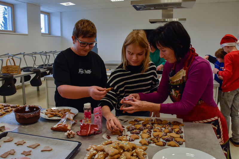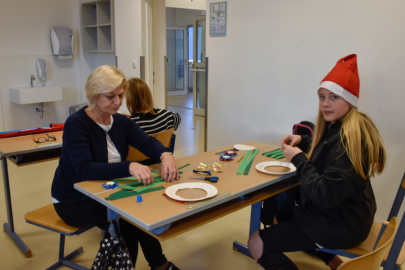 So wurden am 22. Dezember 2023 alle Omis der 2. Klassen, die Lust, Laune und Zeit hatten, zu uns an die Schule eingeladen, um mit den Kindern Zeit zu verbringen. Die Kinder arbeiteten in Stationen und so wurden gemeinsam Kekse gebacken, Weihnachtsdeko gebastelt, Lieder gesungen und Weihnachtstexte und -gedichte gelesen.