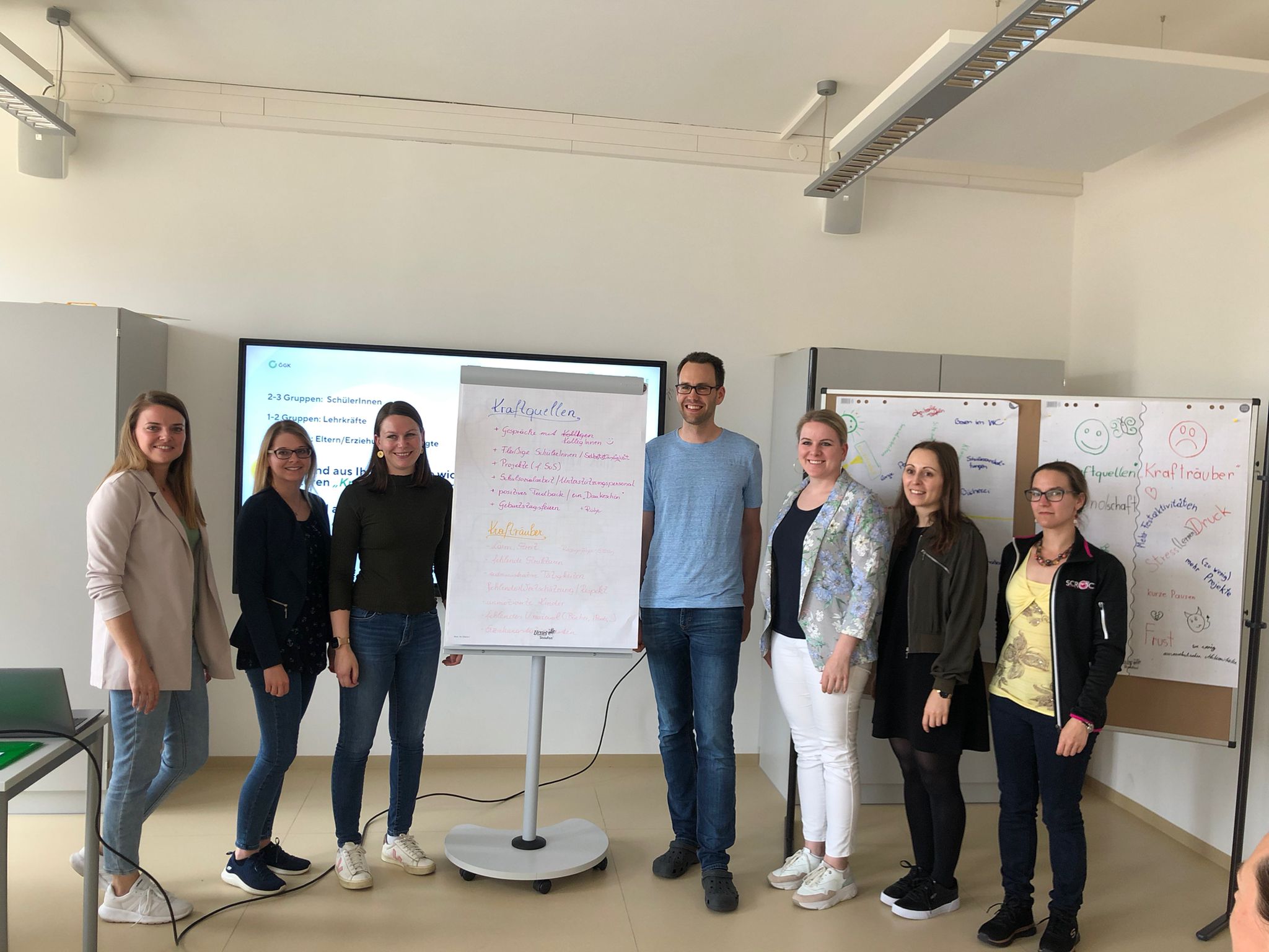 Ein weiterer wichtiger Schritt im Projekt „Gesunde Schule – bewegtes Leben“ konnte am 08. Mai durchgeführt werden: Die Ideenwerkstatt, ein Workshop, der Kinder, Eltern, Lehrpersonen und das Gesundheitsteam an einen Tisch holte. An diesem produktiven Nachmittag konnten wir uns gemeinsam auf Punkte einigen, welche in den nächsten Jahren, im Zuge des Projekts an unserer Schule in den Fokus der Aufmerksamkeit gerückt werden. Das soziale Miteinander, die psychosoziale Gesundheit und Lärm sind dabei als wesentliche Punkte zur Verbesserung genannt worden. In diesen Bereichen werden wir nun speziell Maßnahmen ausarbeiten und positive Verändeurngen anstreben. Der spannende Austausch, der ein Zusammenkommen aller Sichtweisen ermöglichte, wurde von Silvia Friedl von der ÖGK geleitet. Die 3. Klasse der MS Gleinstätten konnte ein ausgezeichnetes Buffet für die Stärkung in der Pause vorbereiten und so durften die Teilnehmerinnen und Teilnehmer auch über die gesunde Jause staunen. Die teilnehmenden Eltern und Kinder gaben auch eine sehr positive Rückmeldung und genossen die Möglichkeit selbst mitreden zu dürfen und ihre eigenen Ideen einbringen zu können. Wir sind gespannt, was das nächste Jahr als gesunde Schule bringen wird und freuen uns, daran weiterarbeiten zu können.