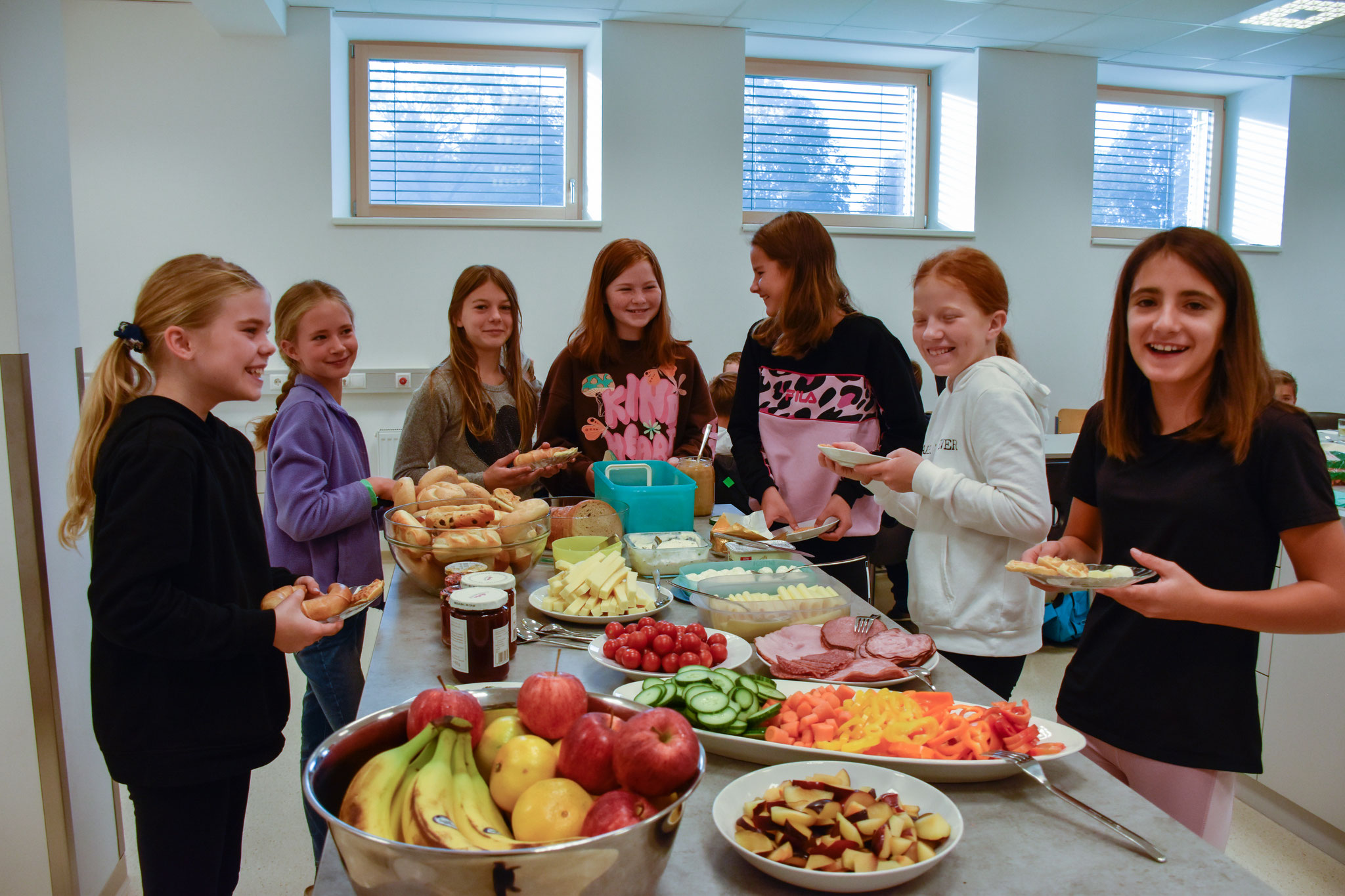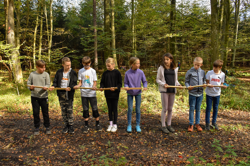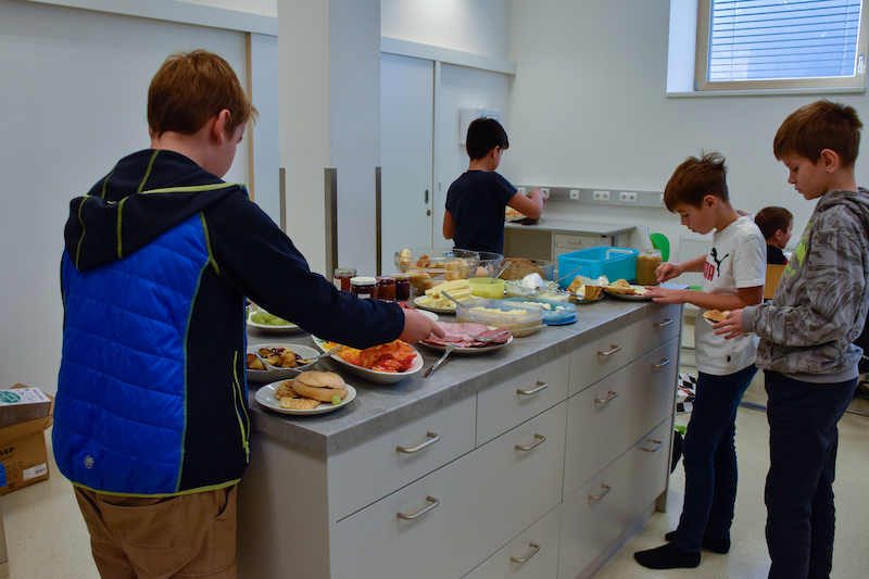 Am 06.10.2022 stand der ganze Tag für die ersten Klassen im Zeichen des Kennenlernens und sozialen Miteinanders. Bei einem reichhaltigen Frühstücksbuffet, welches die Schülerinnen und Schüler gemeinsam vorbereitet haben, konnte der Projekttag gemütlich beginnen. Danach ging es in den Wald, wo die Kinder mit Waldbildern und Mandalas aus Naturmaterialien ihrer Fantasie freien Lauf lassen konnten. Besonders viel Geschicklichkeit und Konzentration verlangte das Murmelspiel – hier war Teamwork gefragt, damit die Murmel über die einzelnen Bahnen von Kind zu Kind weiterrollen konnte. Zum Abschluss konnten noch Lauf- und Ballspiele die letzten Energiereserven aus den Schülerinnen und Schülern herauslocken und so einen Tag voller Spiel und Spaß abrunden.