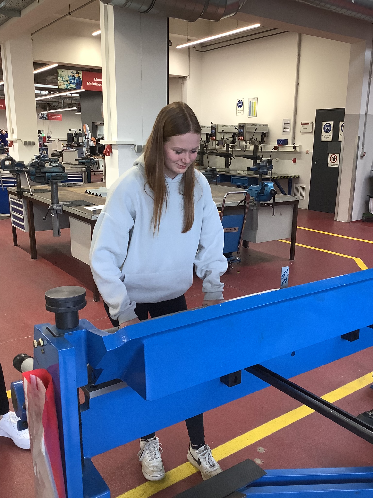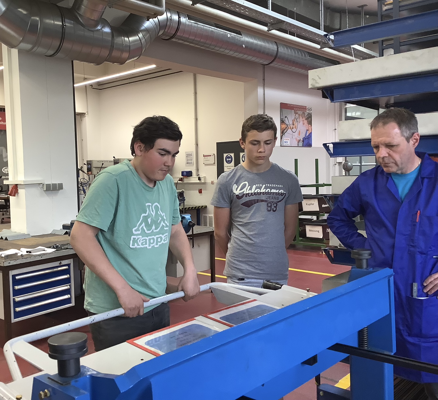 Die Wichtigkeit der Elektrotechnik wurde aufgezeigt und wir erhielten einen Eindruck von den Arbeitsweisen in der Metalltechnik. Unser handwerkliches Geschick konnten wir beim „Kleiderhakenbiegen“ in der Werkstatt unter Beweis stellen.