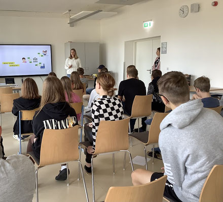 Zum Schluss bekamen unsere Schüler und Schülerinnen Einblick in die Welt der Finanzen. Ramona Molling und Mara Riegelnegg von der Raiffeisenbank Gleinstätten waren im Medienraum unserer Schule zu Gast und gaben Informationen zu den Themen Geld, Zinsen, Kredit und Überweisung.