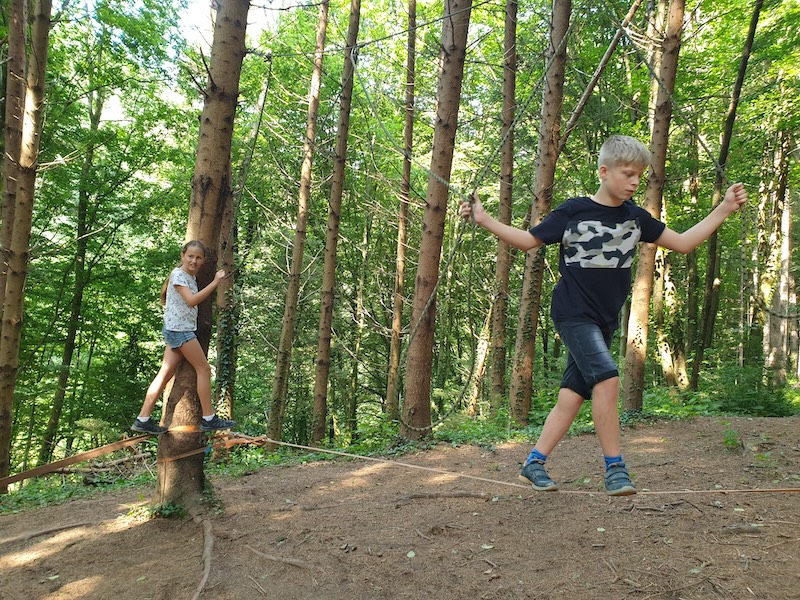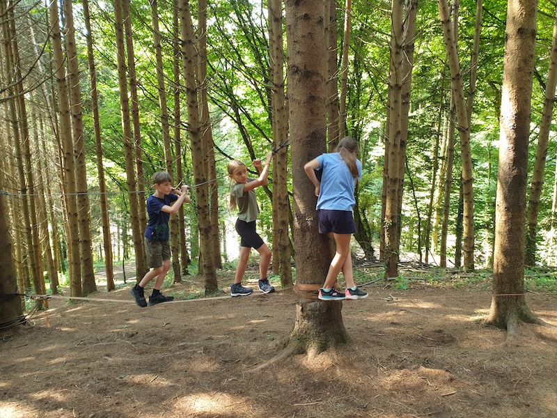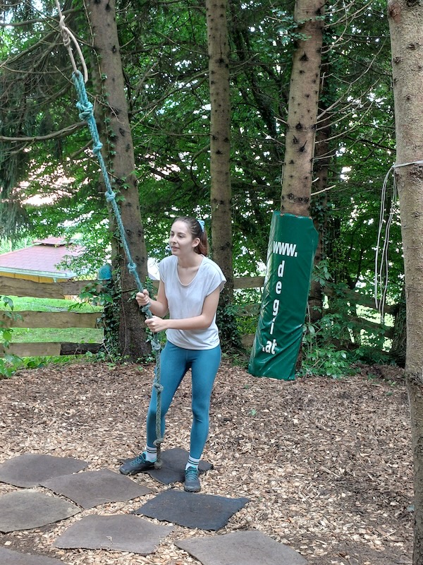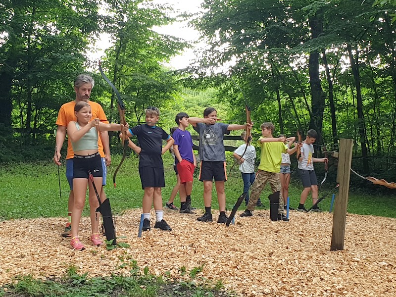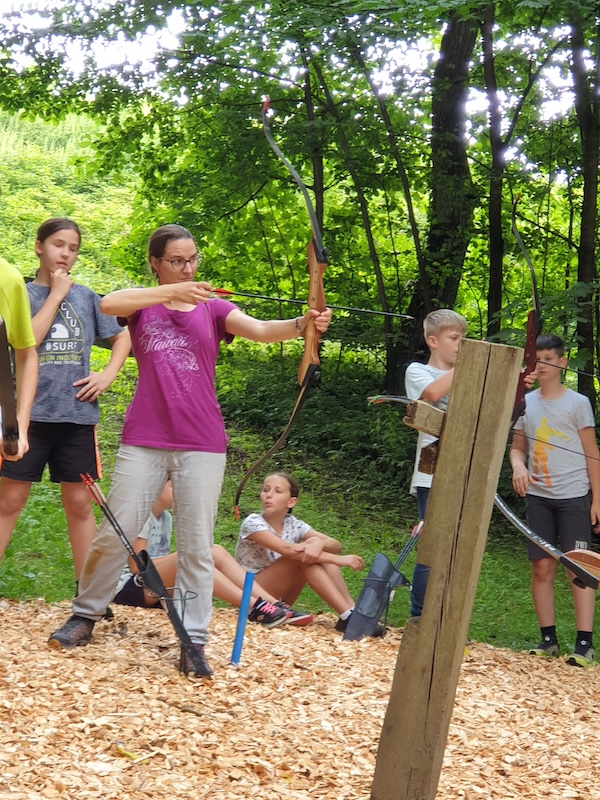 Nach einem gemeinsamen Frühstück am Freitag in der Früh wurde auch an diesem Tag die Teamfähigkeit, die Kommunikationsfähigkeit und ein wertschätzendes Miteinander geschult. Dies geschah beim Bogenschießen, Slacklinen, Bockerlfahren.