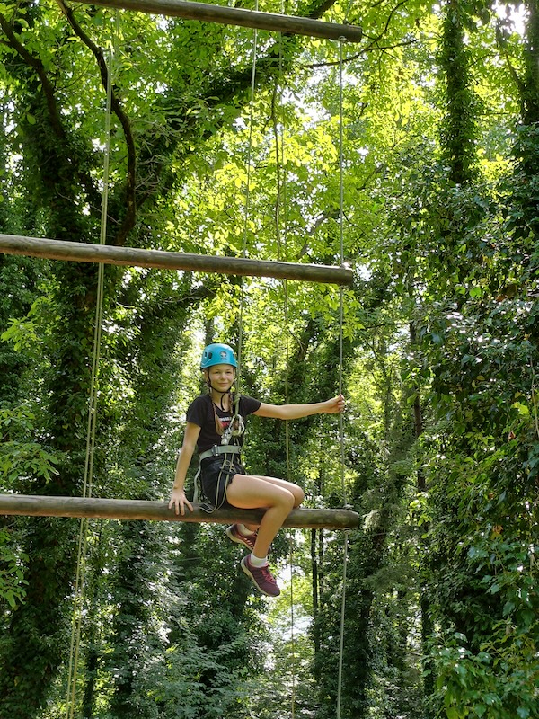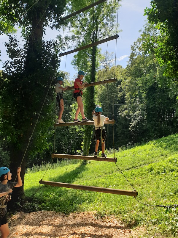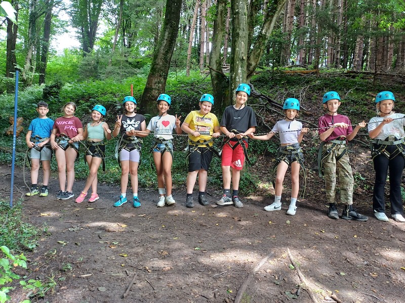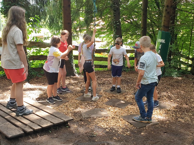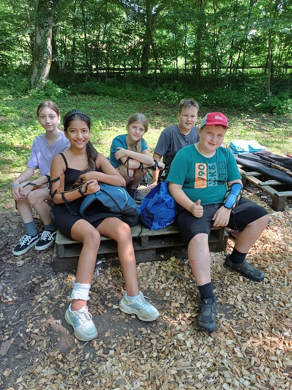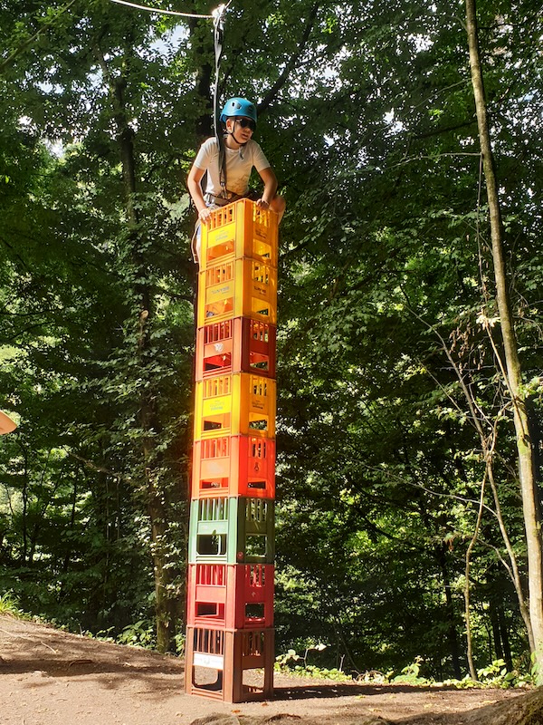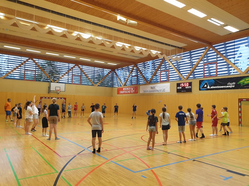 Das Programm vor Ort wurde von DEGI´s Abenteuercamps, einer der ältesten erlebnis-pädagogischen Outdoorschulen Österreichs, durchgeführt. Dabei waren zertifizierte Outdoortrainer:innen tätig. Im angrenzenden Wald wurden unterschiedlichste Aktivitäten gemeinsam gemeistert und eigene Grenzen überschritten. Während dieser Zeit konnten die Schüler:innen ihre Fähigkeiten im Kistenstapeln, Pyramidenbau sowie an der so genannten Himmelsleiter unter Beweis stellen. Der Abend endete mit einem spannenden „Ultimate-Frisbee-Match“.