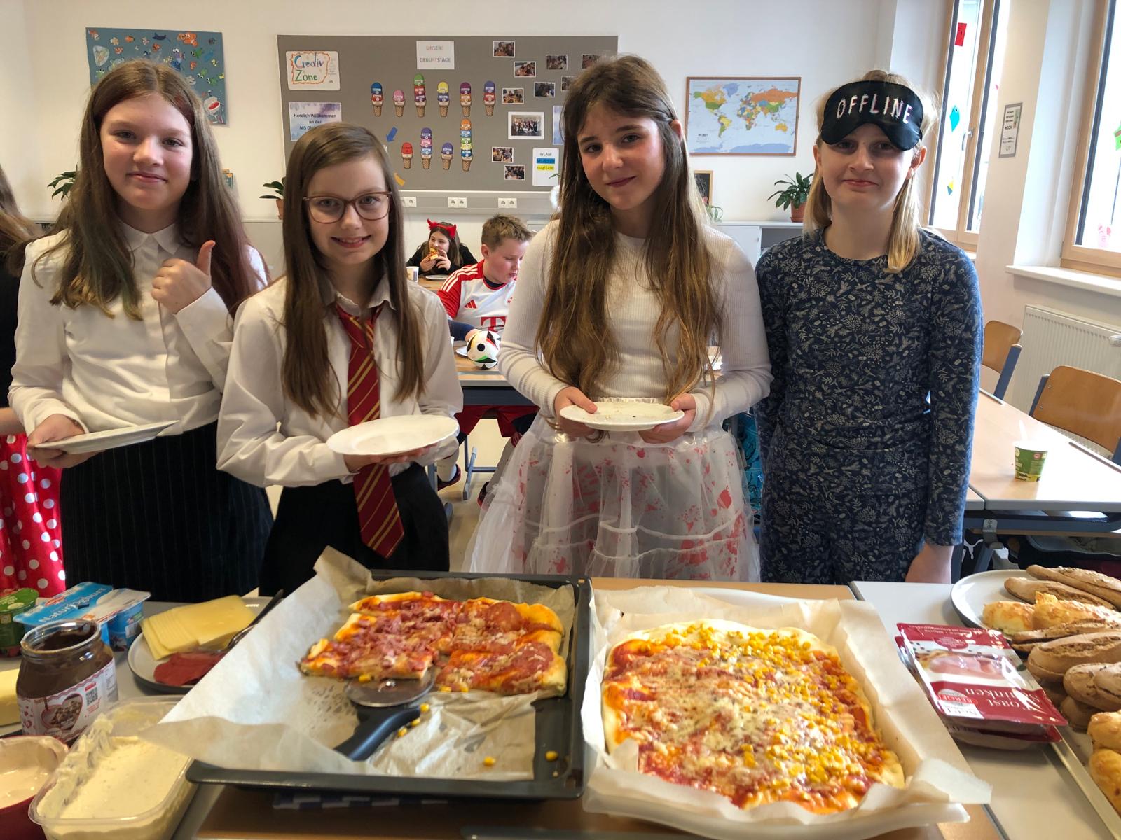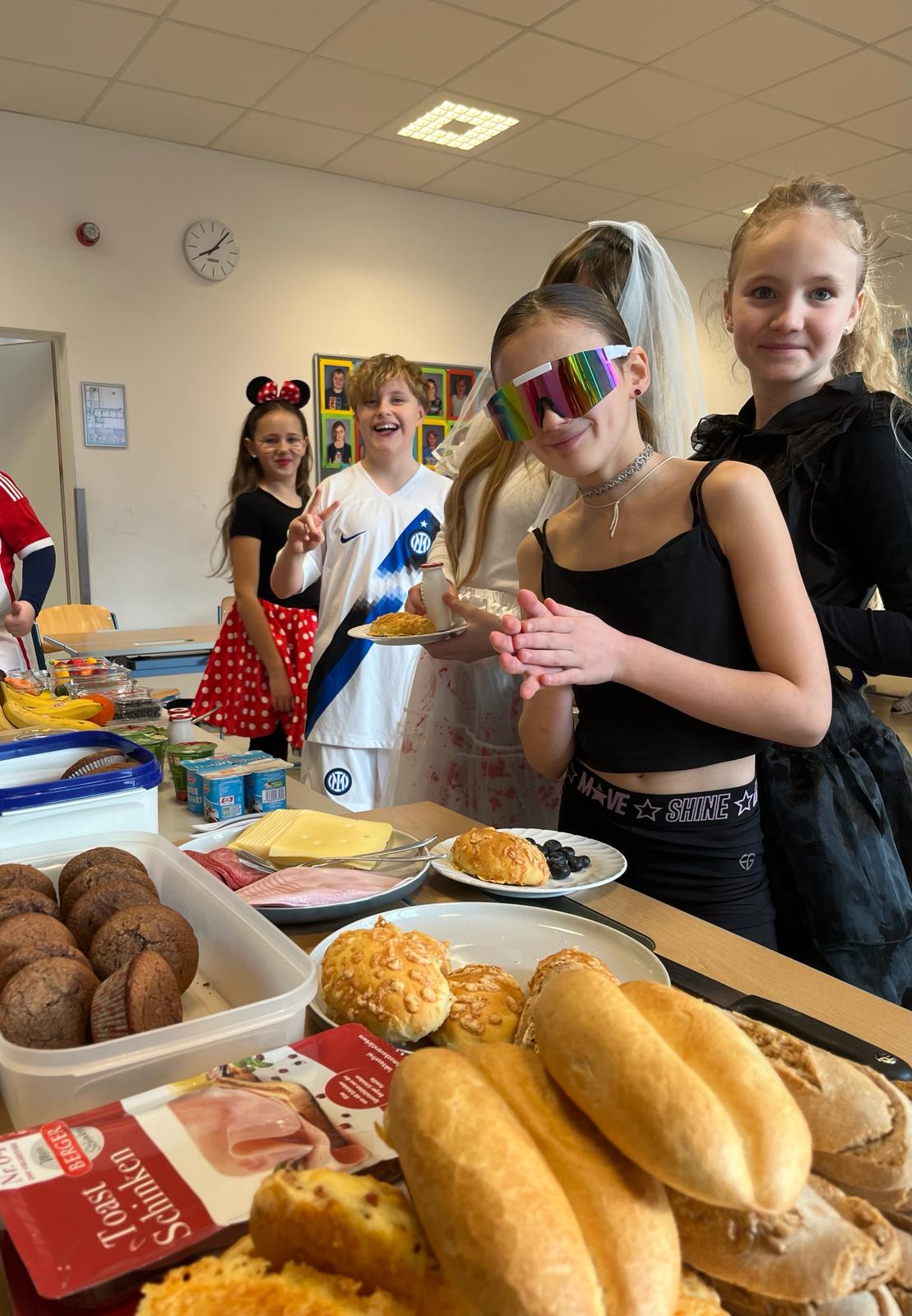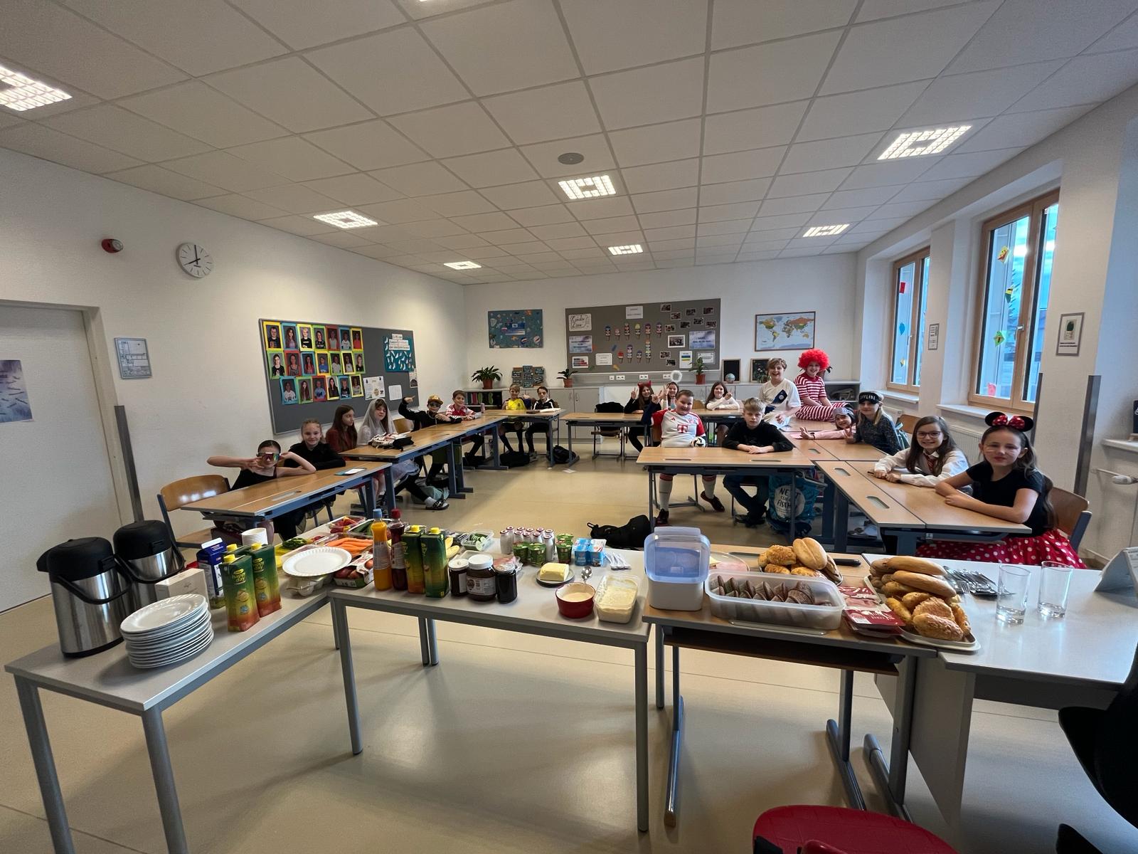 In den 3. Klassen ging es am Faschingsdienstag darum, die Gemeinschaft zwischen den beiden 3. Klassen durch entspannte, gemeinsame Stunden zu stärken. Und so begann der Tag mit einem gemütlichen Frühstück, wo jeder der Schüler:innen etwas Leckeres mitbrachte. Nachdem alles aufgebaut wurde, ging es auch schon ans Verspeisen der Köstlichkeiten. Dabei konnte getratscht werden und die Verkleidungen der Mitschüler:innen bewundert werden.
