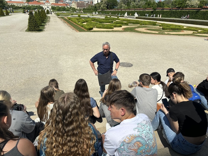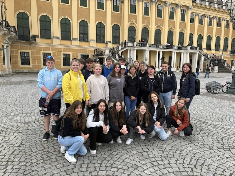 Am letzten Tag war in der Früh gutes Zeitmanagement gefragt. Die Betten mussten abgezogen, die Zimmer aufgeräumt, die Koffer fertig gepackt und in den Gepäckraum gebracht werden und es wurde gefrühstückt. Vormittags besuchten wir das Schloss Schönbrunn. Wir hatten eine Führung durch die wunderschönen Zimmer und erfuhren nebenbei auch interessante Details über Kaiser Franz Joseph und Sisi. Unser Bus holte uns nach dem Mittagessen ab und brachte uns zum ORF Zentrum, wo wir eine Backstage Führung hatten. Dort bekamen wir einen kleinen Einblick in die Tätigkeiten des österreichischen Rundfunks. Im Studio “Die große Chance” durften wir bei den Vorbereitungen für die Fernsehshow zuschauen. Einige mutige Schüler:innen durften sich als Moderator:in versuchen.
