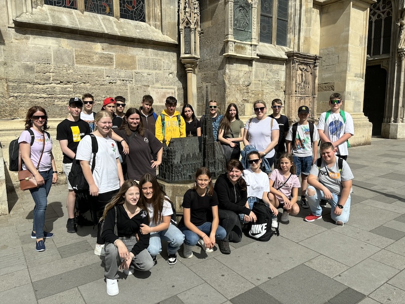 Wir fuhren um 7:30 Uhr vom Busbahnhof in Gleinstätten Richtung Wien ab. Nach eineinhalb Stunden Busfahrt machten wir auf halber Strecke eine Pause. Angekommen in der Jugendherberge haben wir unsere Zimmer bezogen und uns innerhalb kürzester Zeit auf den Weg gemacht, um die wohl bekannteste Kirche Österreichs, den Stephansdom, zu besichtigen. Der Stephansdom ist eine gotische Kirche, die folgende Merkmale bei der Bauart aufweist: schmal, hoch, spitz. Im Anschluss machten wir noch einen Rundgang zum Heldenplatz und zum Volksgarten. Nach diesem aufregenden ersten Tag freuten wir uns auf die gemütlichen Betten.