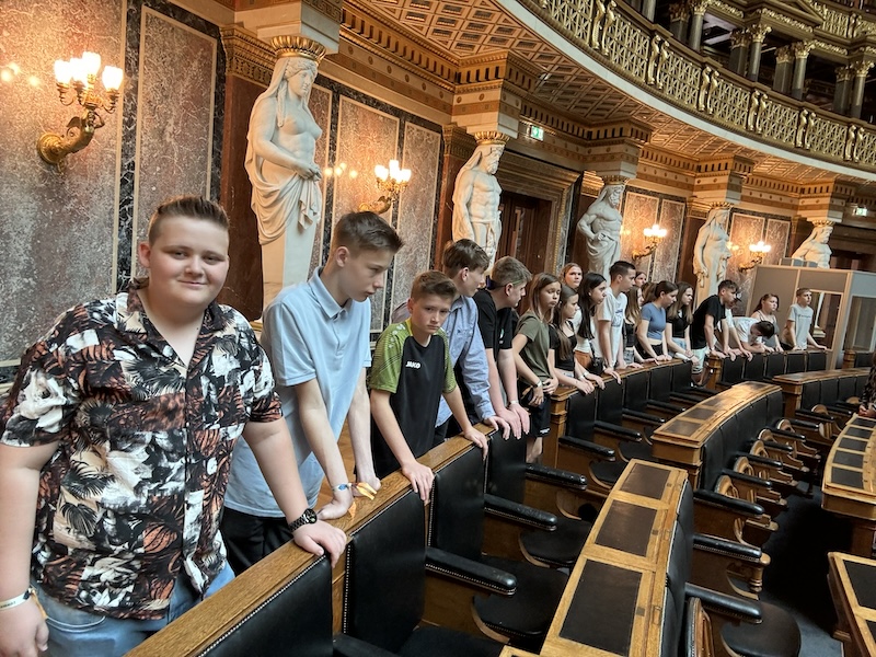 Der Tag begann mit einem leckeren Frühstück. Um 8:30 Uhr ging es los zum Parlament. Nach dem Sicherheitscheck begann unsere Führung. Diese war sehr interessant und wir haben viel über die aktuelle Politik gelernt. Besonders beeindruckend war der Nationalratssaal. Mit der Straßenbahn ging es dann zurück in die Jugendherberge, wo wir zu Mittag aßen. Am Nachmittag stand das Schloss Belvedere am Programm, wo wir eine Führung durch das gesamte Schloss hatten. Ein besonderes Highlight war das berühmte Bild von Gustav Klimt „Der Kuss“. Anschließend hatten wir eine Führung in der Karlskirche. Zum Abschluss des Tages stand ein Besuch im Kino am Programm, wo wir den Film „The Fall Guy“ beziehungsweise „Kung Fu Panda 4“ anschauten.