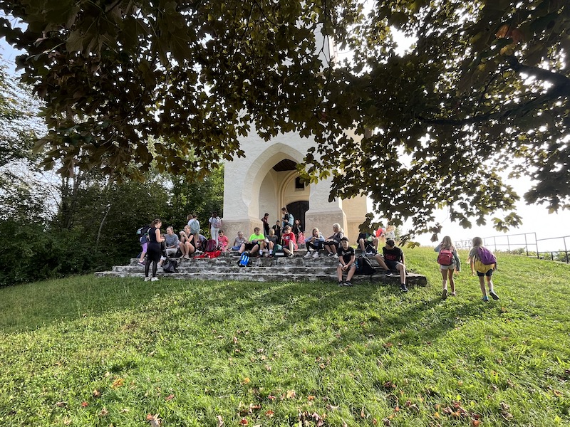 Unser erster gemeinsamer Wandertag der 1. Klassen führte uns zur Georgikirche, dabei stand das gegenseitige Kennenlernen im Vordergrund. Beim gemütlichen Gehen erzählt es sich leichter und wir hatten alle großen Spaß dabei. Für unsere jüngsten SchülerInnen der MS Gleinstätten bereitete der Anstieg zu einer der ältesten Kirchen unserer Gegend keine großen Probleme. Aber am Ziel angelangt, freuten wir uns über die Pause und unsere Jause. Bei angenehmen Temperaturen genossen wir den Tag und den schönen Ausblick über das südsteirische Weinland. Auch unsere Kreativität kam während einer weiteren Pause nicht zu kurz. Dabei wurden herbstliche Mandalas gestaltet sowie Fußball und Volleyball gespielt.
