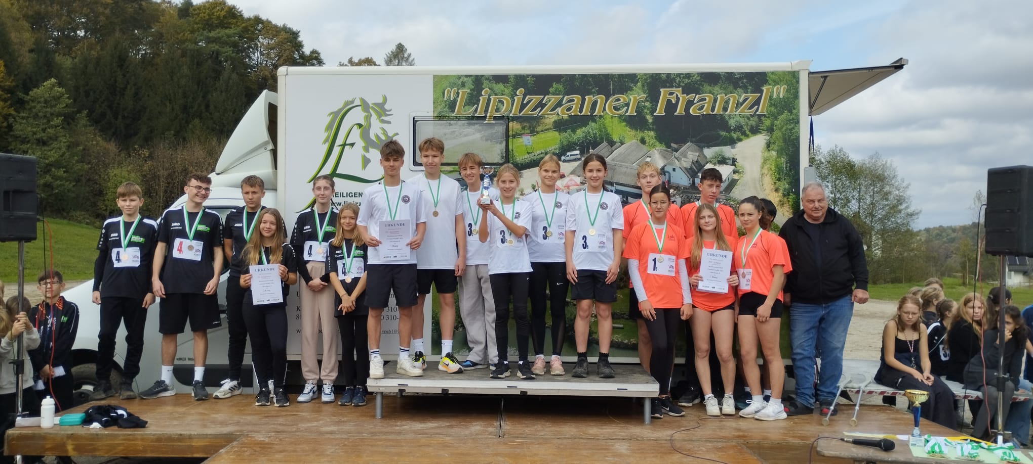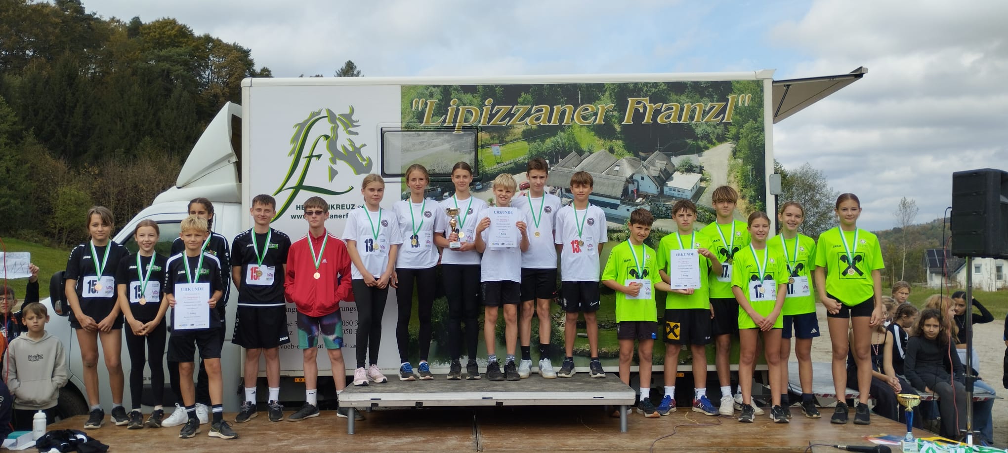 Heiligenkreuz am Waasen: Bei optimalen Laufbedingungen fand am Dienstag die von der Mittelschule Heiligenkreuz hervorragend organisierte Bezirksmeisterschaft im Crosslauf -Staffel statt. 13 Schulen aus dem Bezirk schickten ihre besten Läufer:innen auf den ca. 750m langen Rundkurs beim „Lippizaner Franzl".