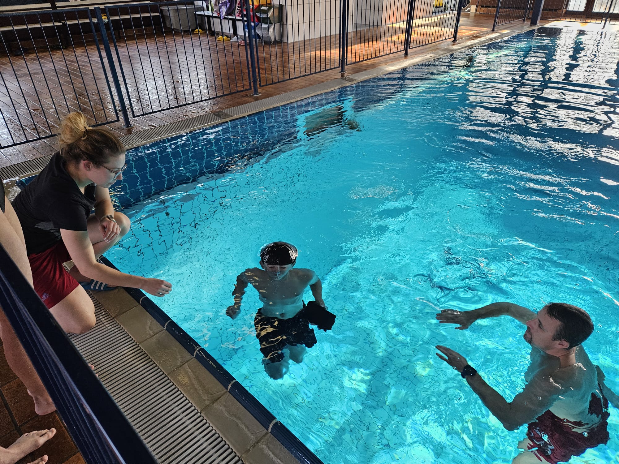 Überdies trauten sich einige Schüler:innen mit einem 2 kg schweren Block zu tauchen.