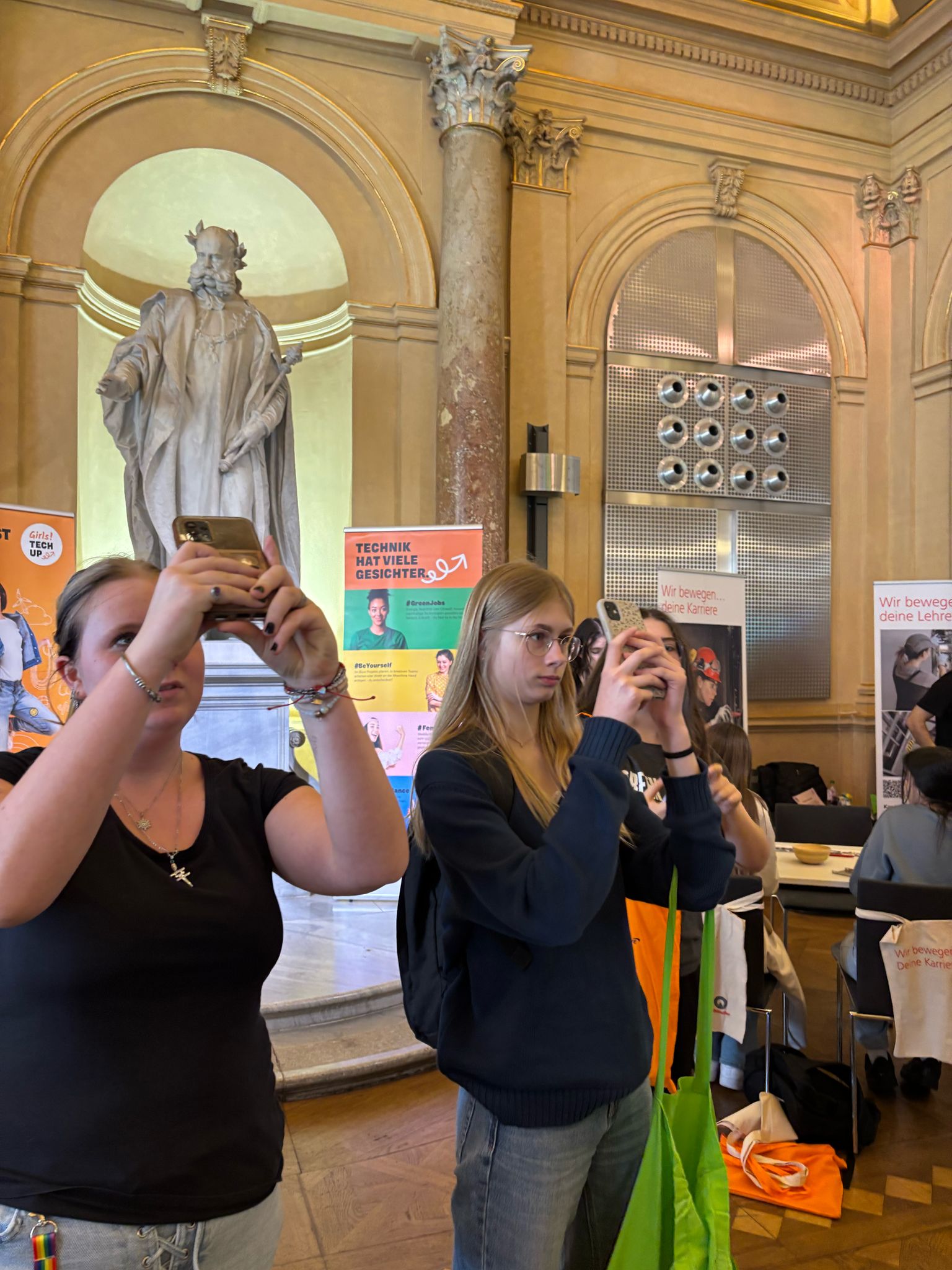 Am 27. März 2025 besuchten einige Mädchen aus den 3. und 4. Klassen die alte Universität in Graz, um mehr über technische Berufe zu erfahren. Die Veranstaltung war äußerst interessant, und alle Teilnehmerinnen hatten viel Spaß. Während des Events gab es ein Gewinnspiel, bei dem sie Fragen zu verschiedenen Firmen beantworten mussten. Leider konnte keine Schülerin den Hauptpreis – eine Besichtigung bei einer Firma oder einen Gutschein für einen Trampolinpark – gewinnen. Dennoch hatten die Schülerinnen die Möglichkeit, bei mehreren Firmen spannende Experimente durchzuführen. Mit großer Begeisterung bauten sie eine Drohne mithilfe einer VR-Brille, die alle Schritte erklärte, und steuerten eine Roboterkugel mit Unterstützung eines Computers. Als Erinnerung an den Tag erhielten die Mädchen tolle Goodies von den Firmen. Mit vollen Säckchen, randvoll mit Werbeartikeln, machten sie sich schließlich auf den Heimweg.