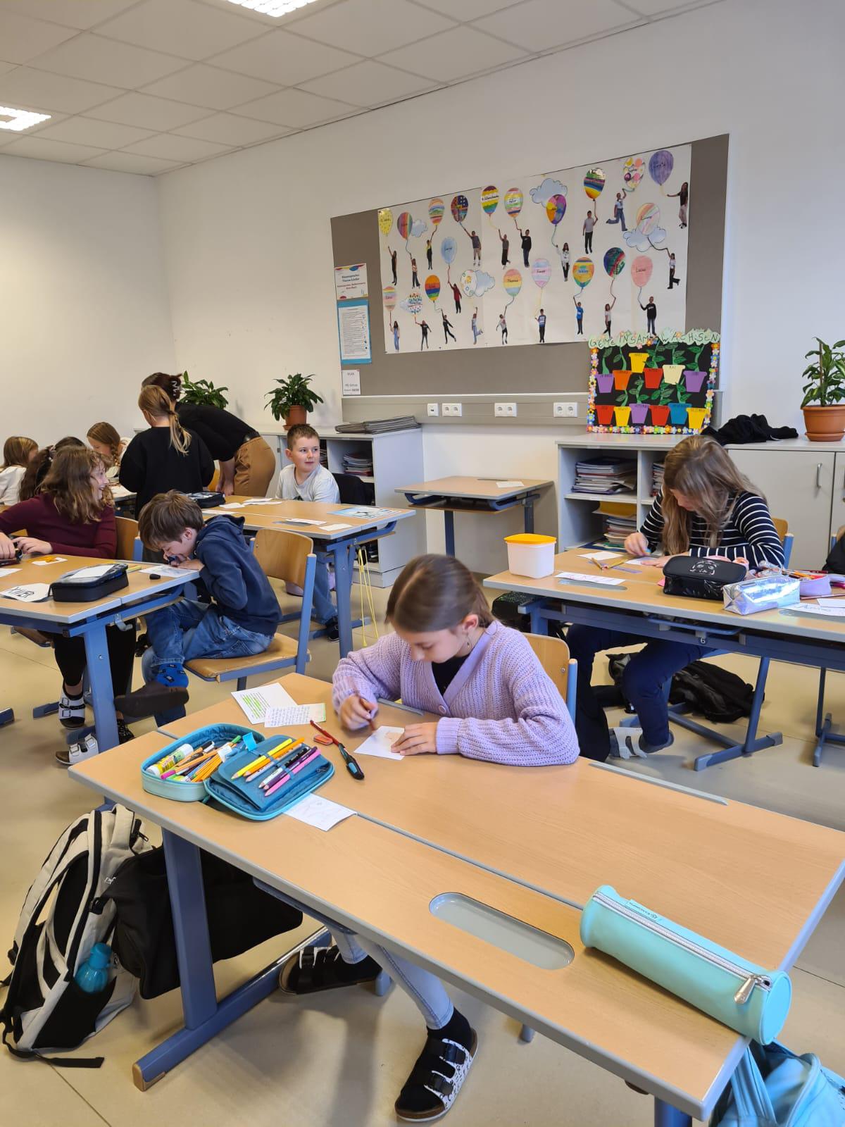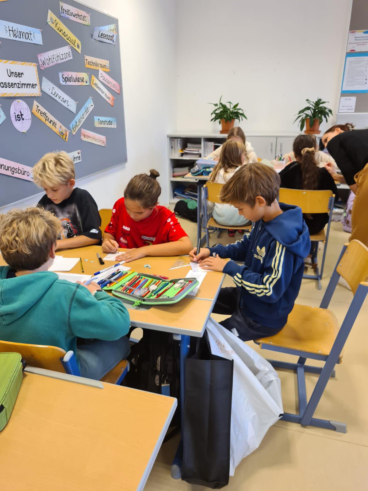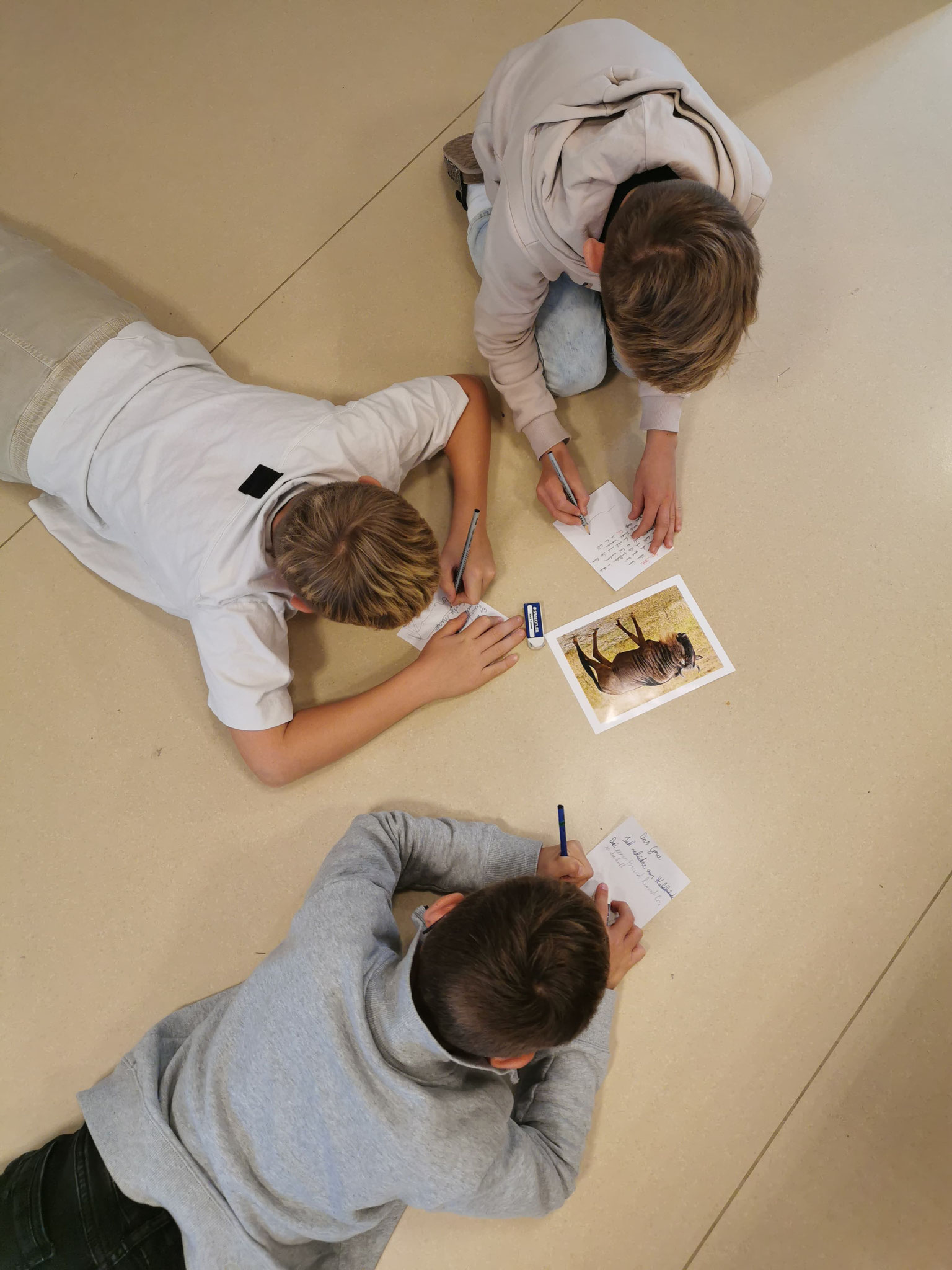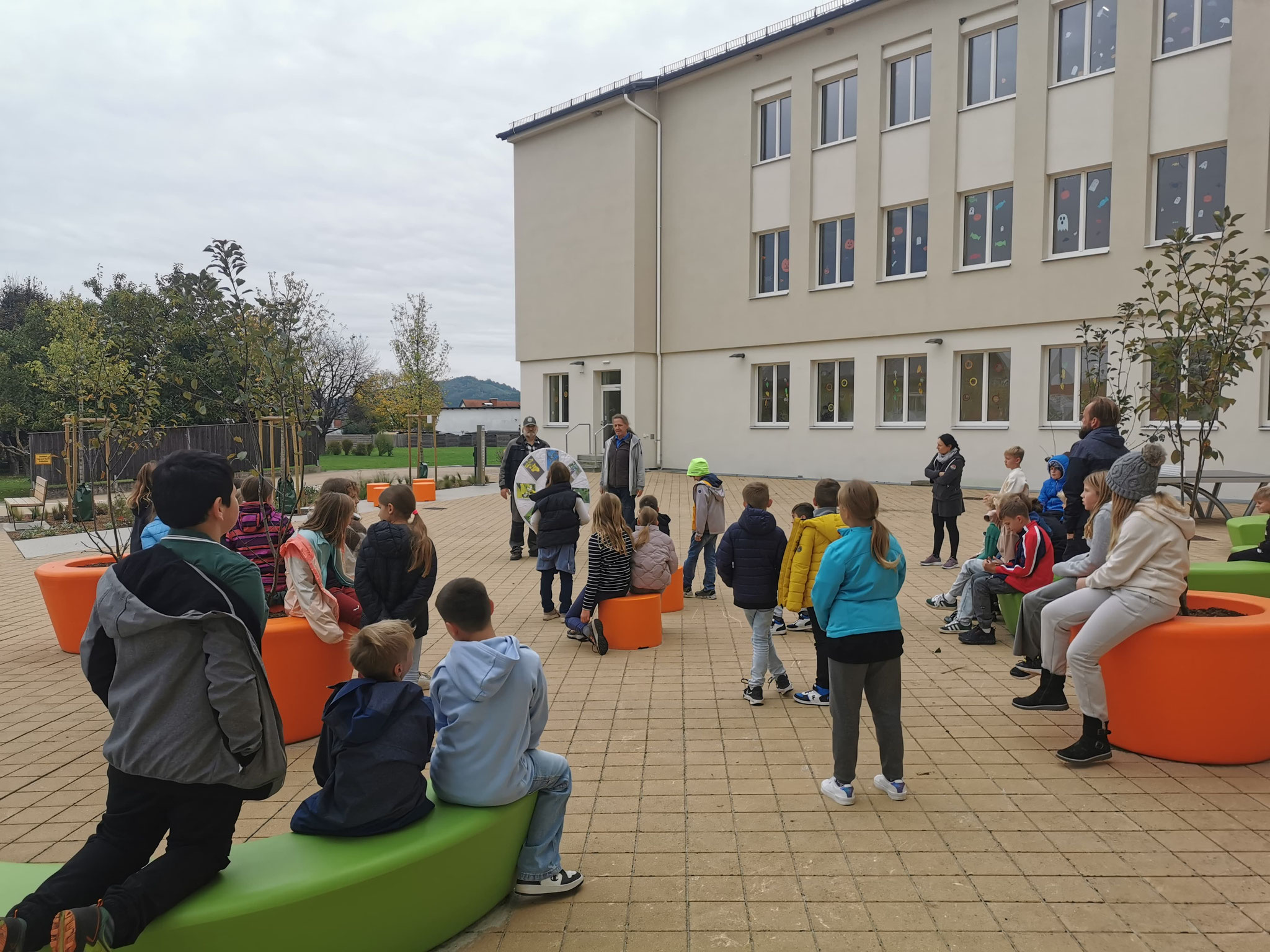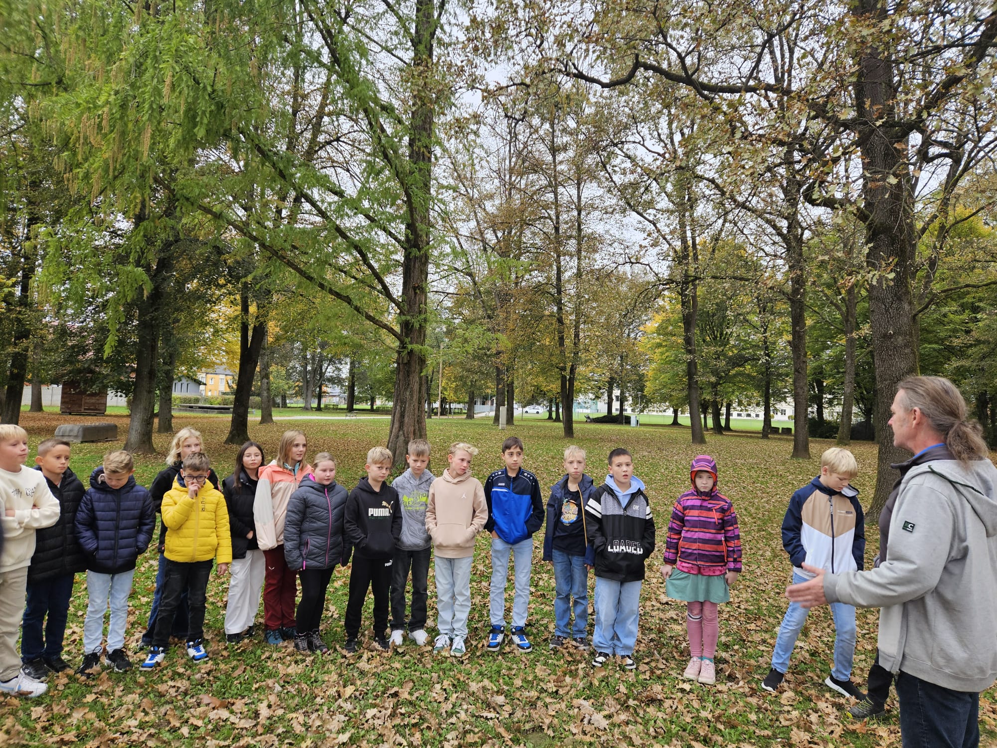 Thomas erklärte den Schüler:innen die unterschiedlichen invasiven Neophyten, die in unserer Gegend zu finden sind, insbesondere entlang der Sulm. Die Kinder lauschten gespannt und stellten zahlreiche Fragen, bevor sie selbst aktiv wurden: Mit laminierten Blättern der gezeigten Neophyten suchten sie in der Umgebung nach den echten Pflanzen.