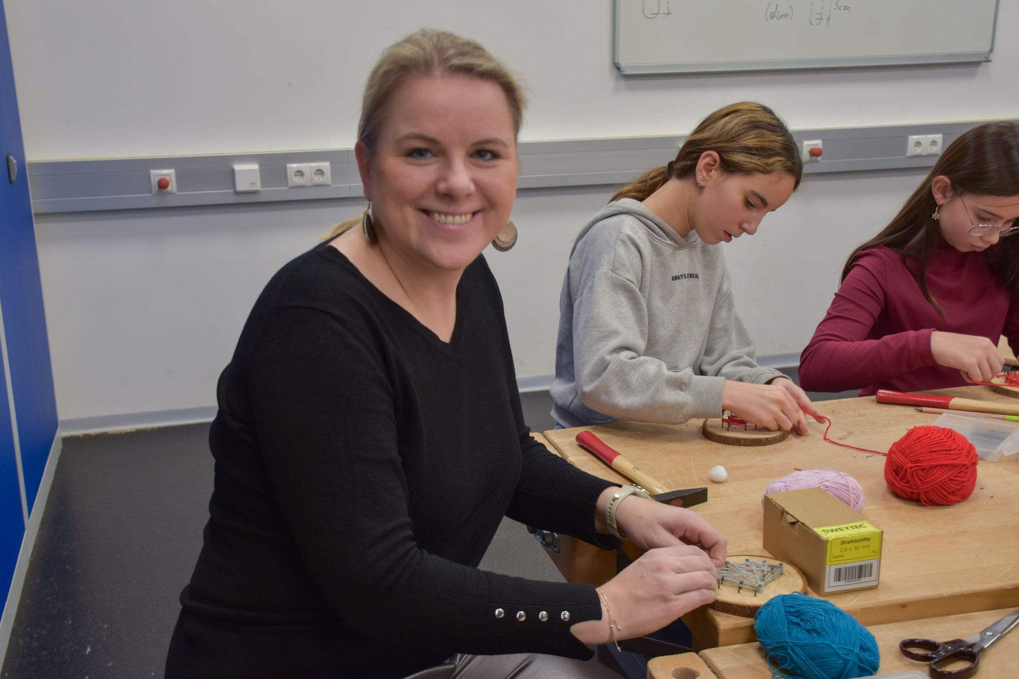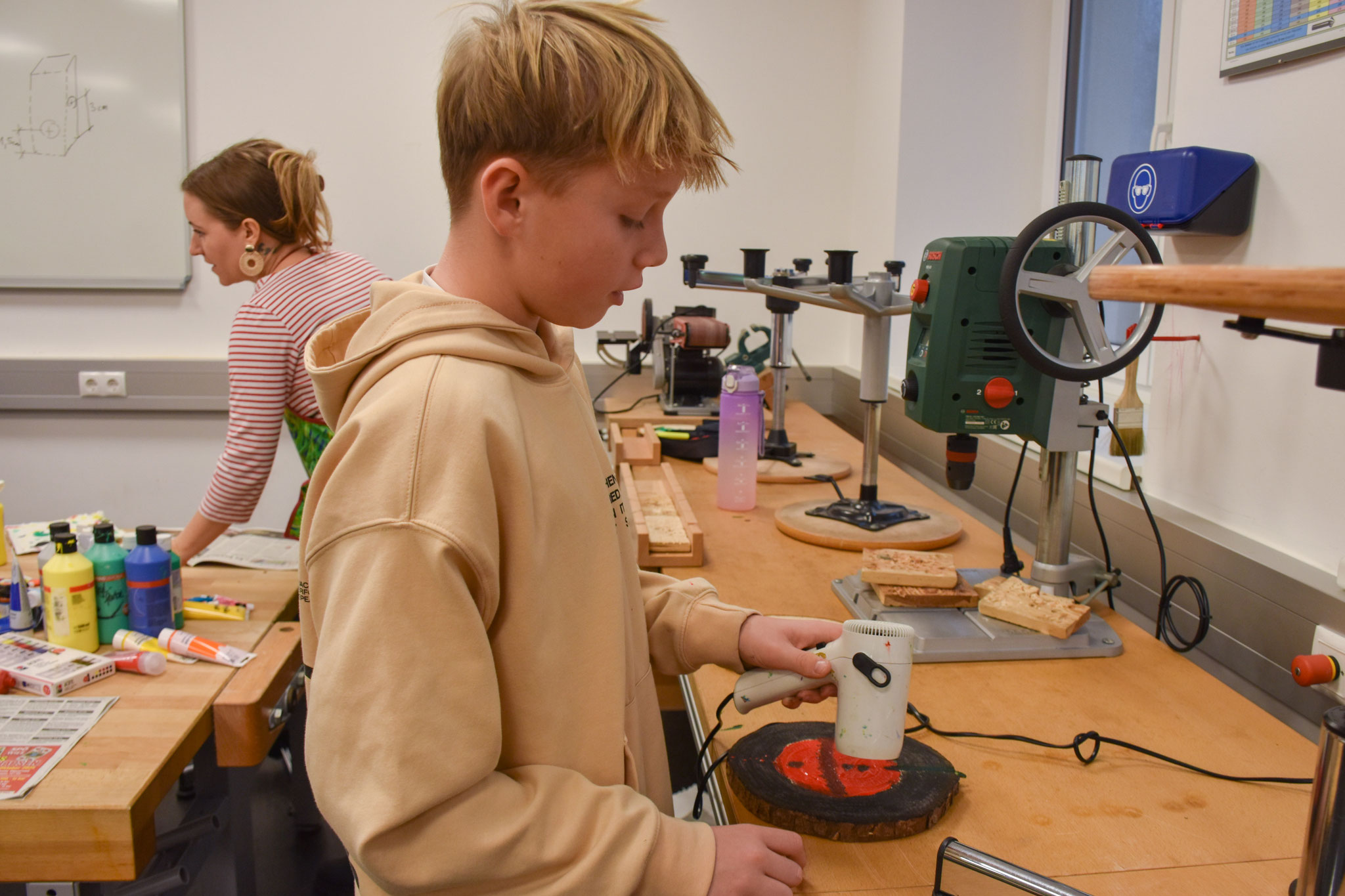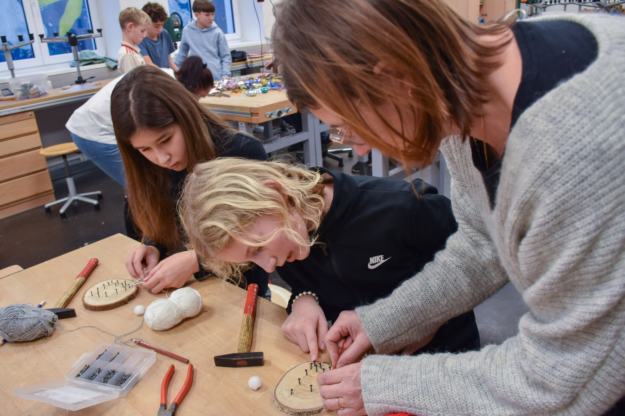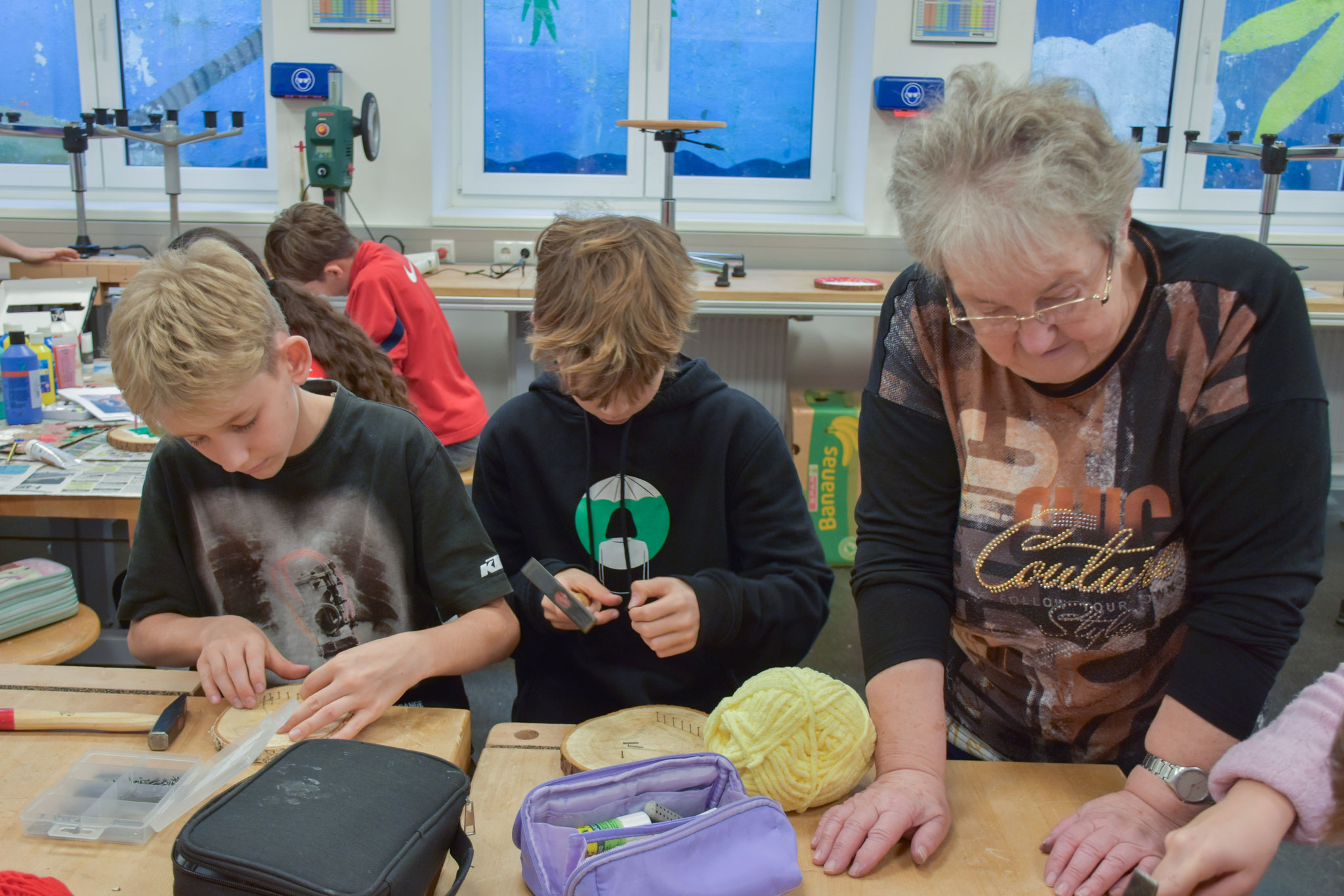 Hier ging es handwerklich zu. Aus Ästen wurden schlichte, schöne Sterne gebunden und mit bunten Bändern geschmückt. Außerdem entstanden Holzanhänger, umwickelt mit Wolle oder bemalt mit Acrylfarben. Eine Station, die viel Raum für Kreativität ließ.