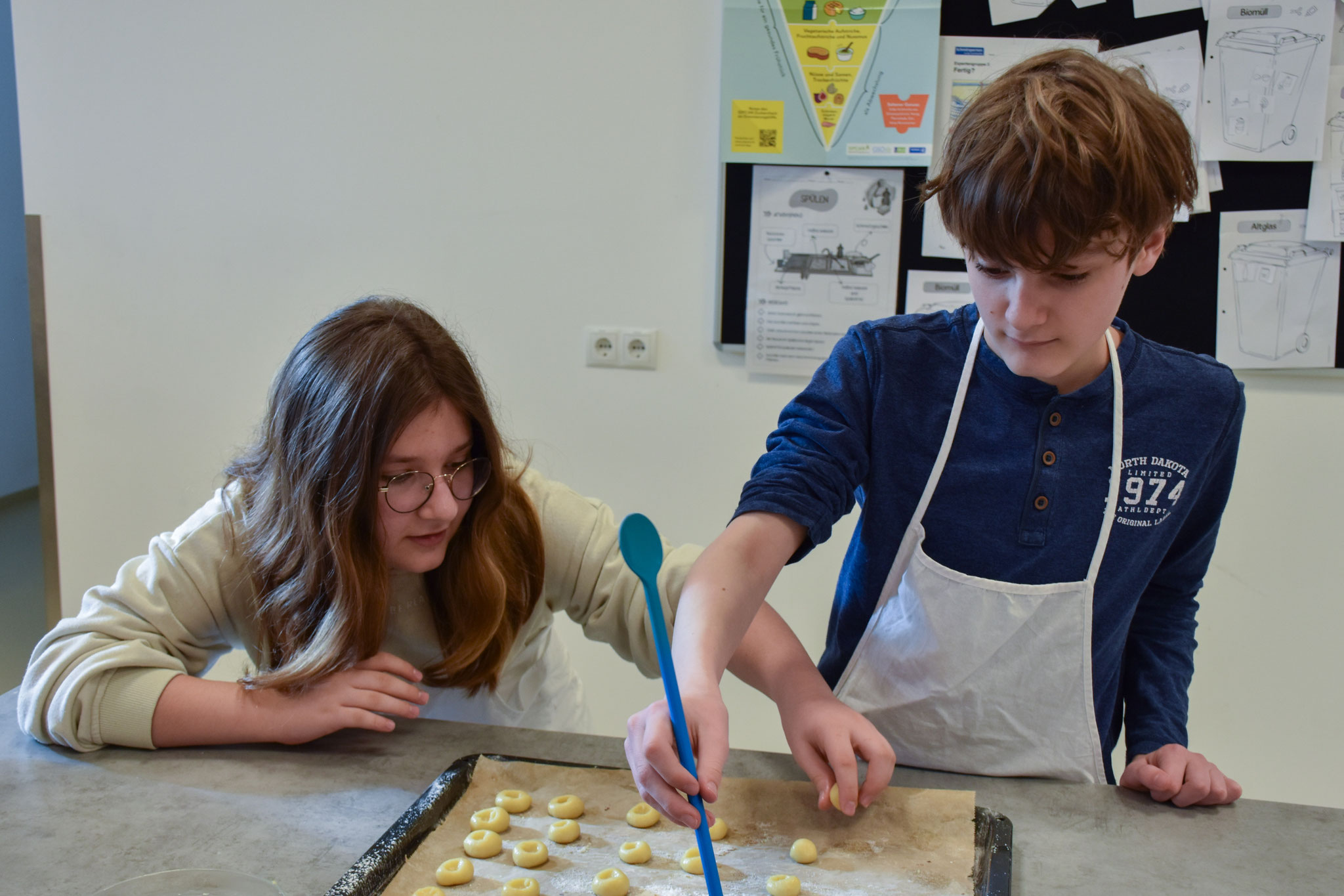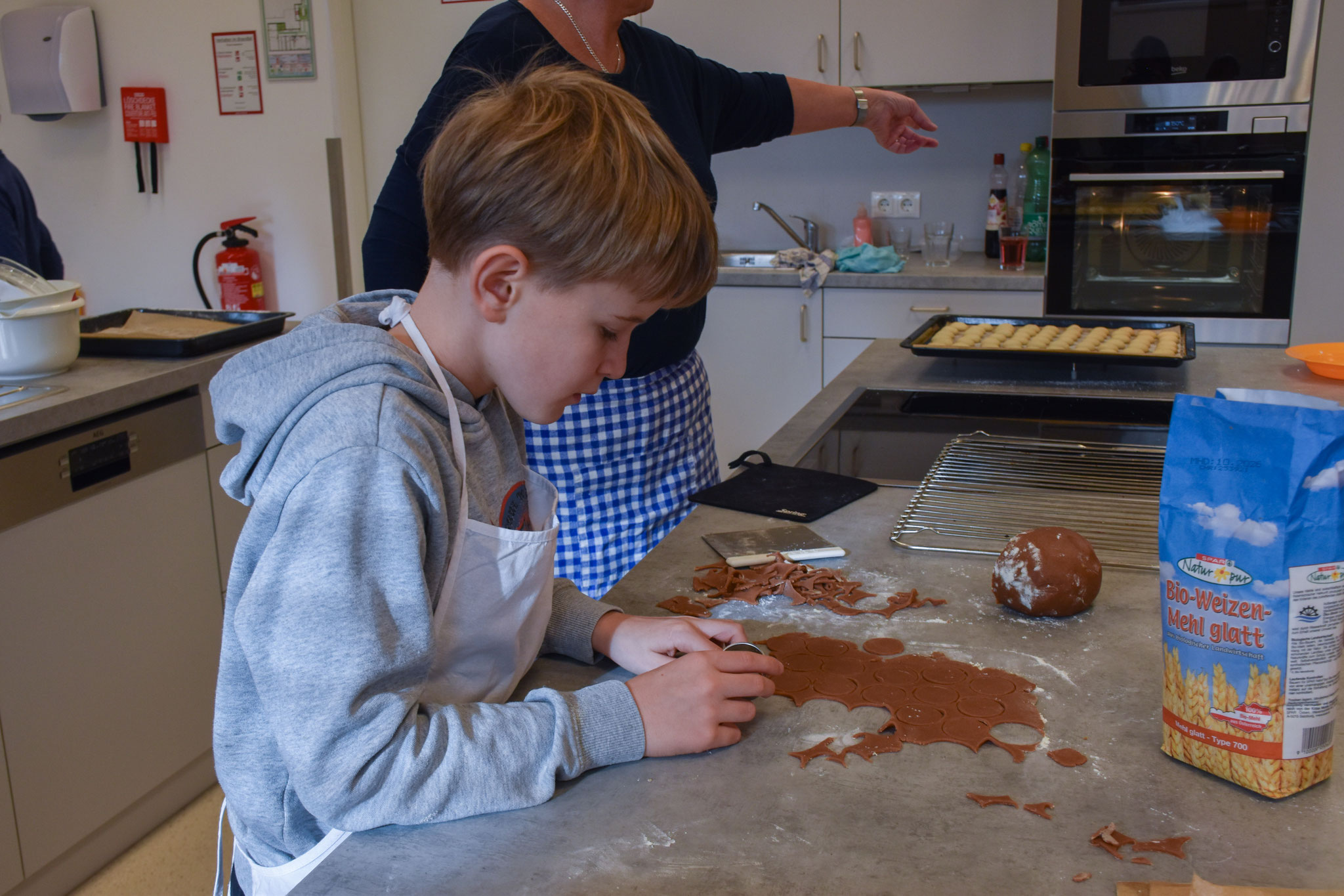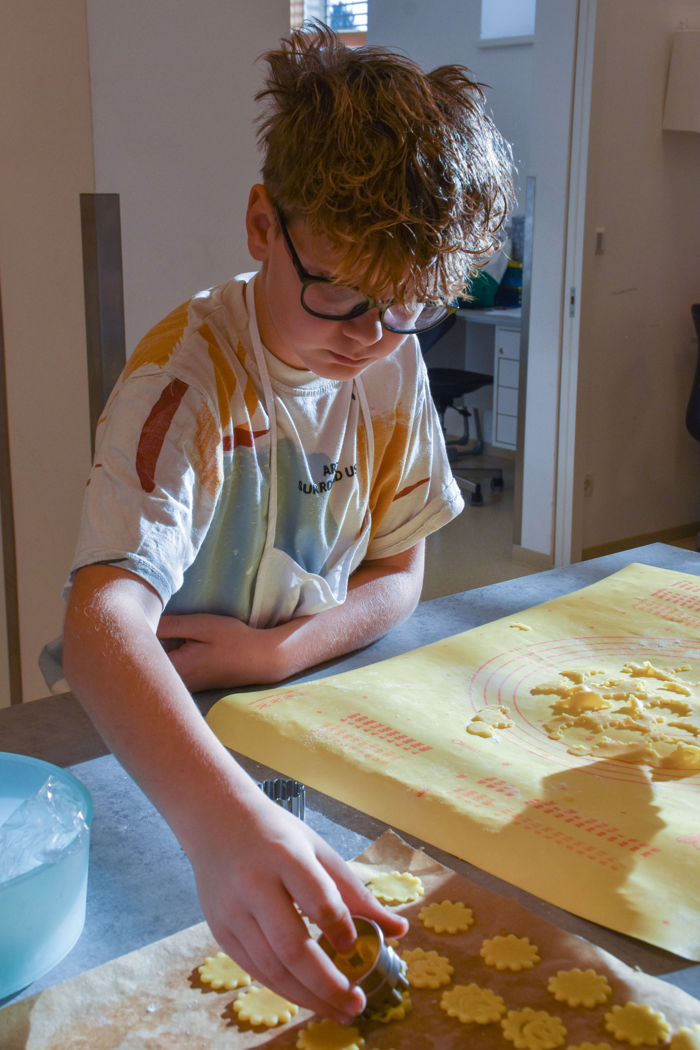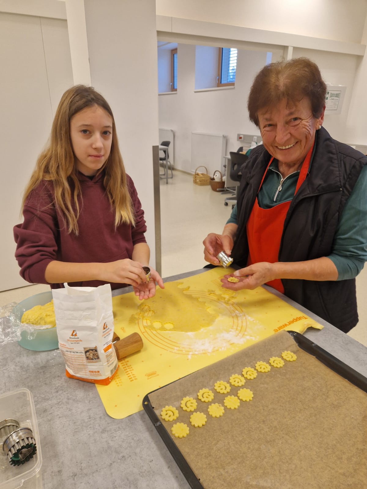 In der Schulküche entstanden unterschiedlichste Kekssorten – klassisch, kreativ, bunt gemischt. Die Schüler:innen arbeiteten konzentriert mit, kneteten, stachen aus und verzierten. Alle Kekse werden beim Adventmarkt verkauft, und der gesamte Erlös kommt direkt den Kindern zugute. Das gibt der Arbeit an dieser Station einen spürbaren zusätzlichen Wert.