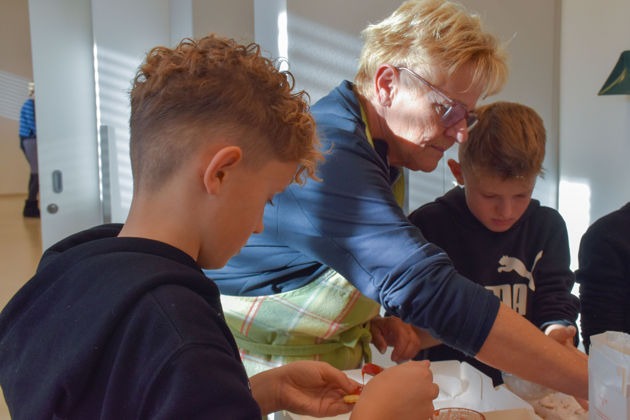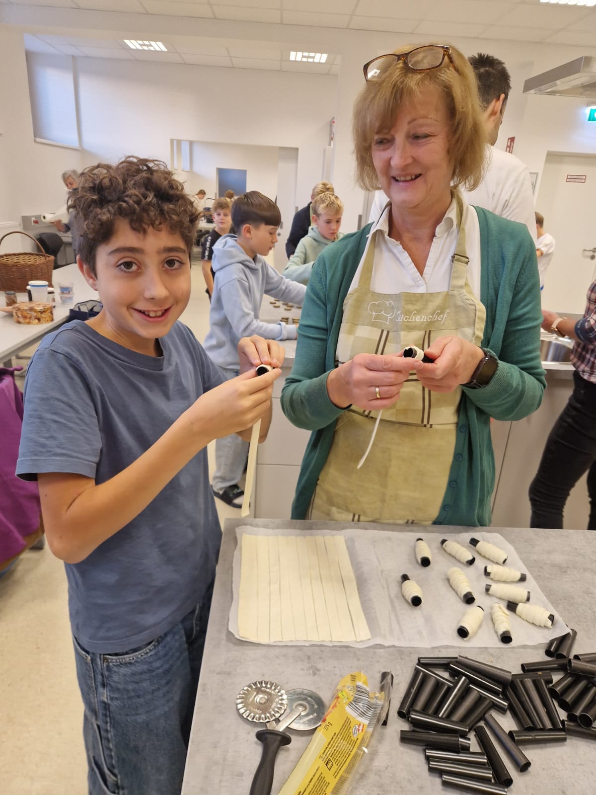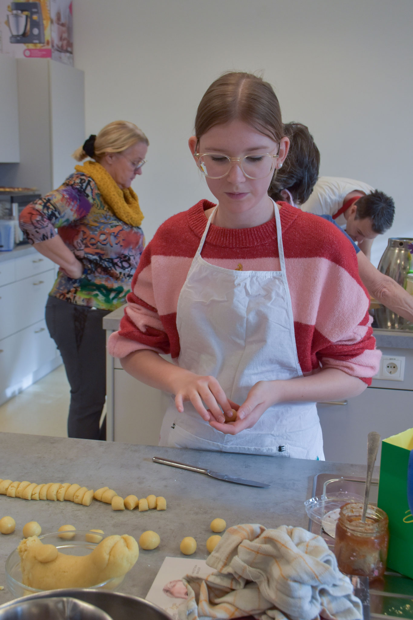In der Schulküche entstanden unterschiedlichste Kekssorten – klassisch, kreativ, bunt gemischt. Die Schüler:innen arbeiteten konzentriert mit, kneteten, stachen aus und verzierten. Alle Kekse werden beim Adventmarkt verkauft, und der gesamte Erlös kommt direkt den Kindern zugute. Das gibt der Arbeit an dieser Station einen spürbaren zusätzlichen Wert.