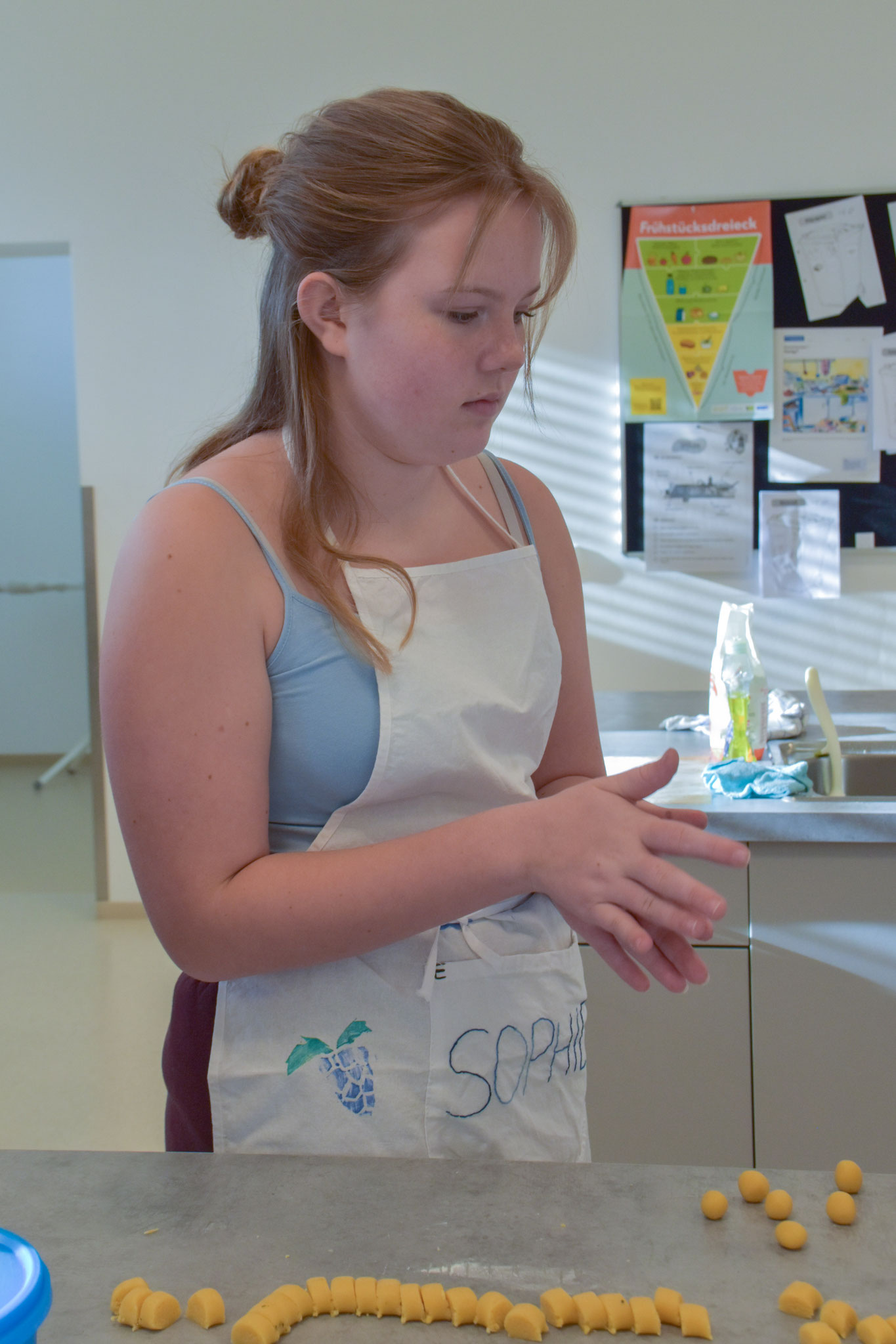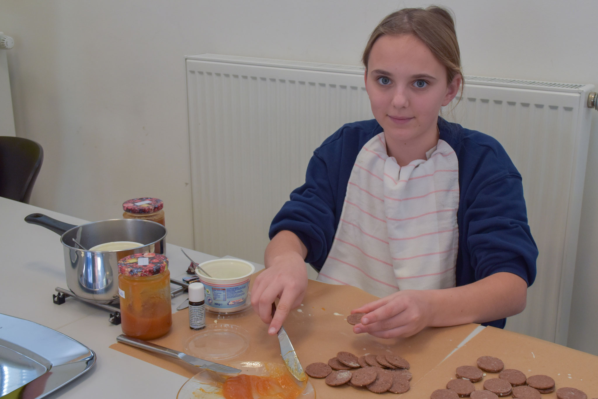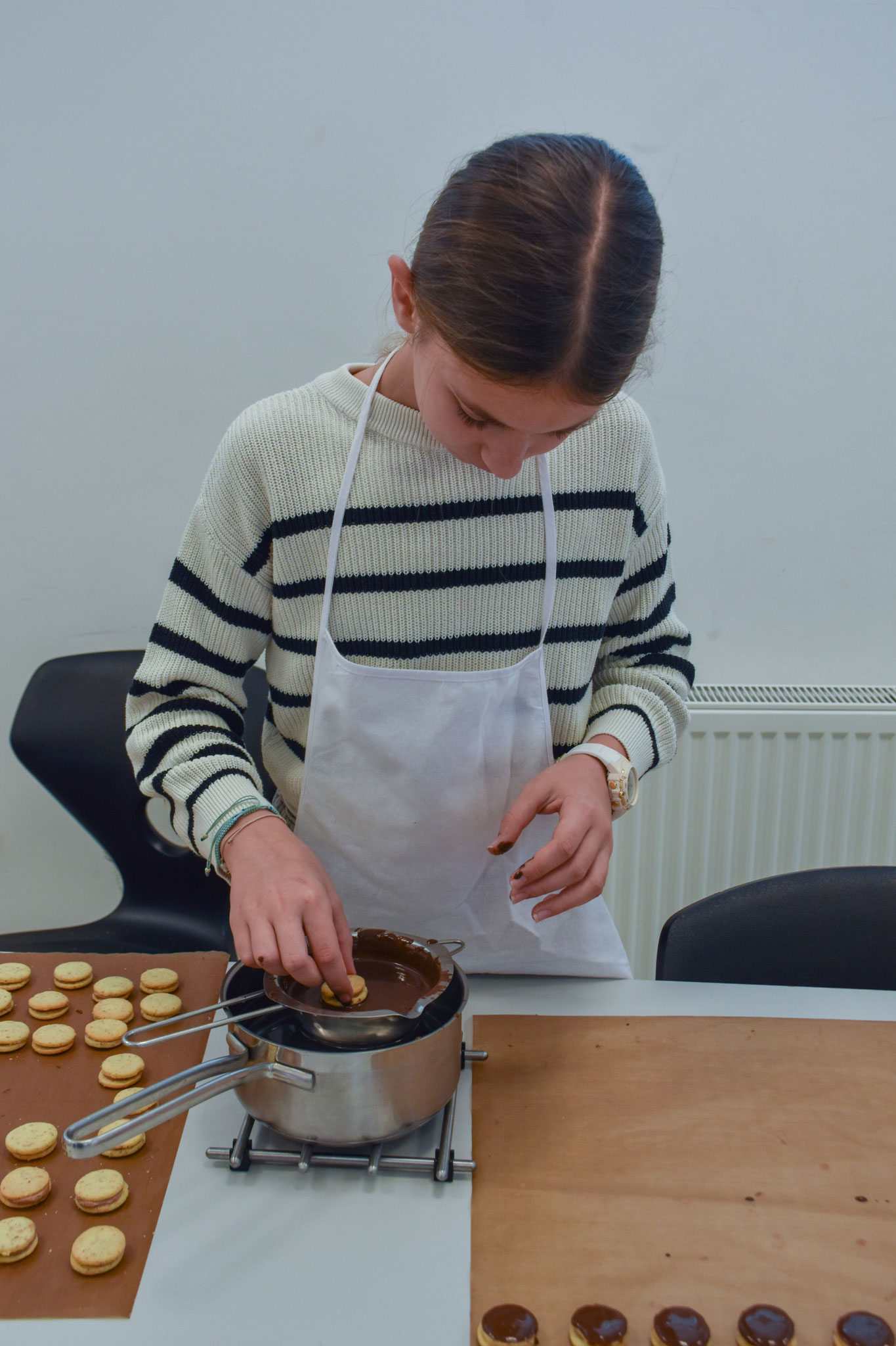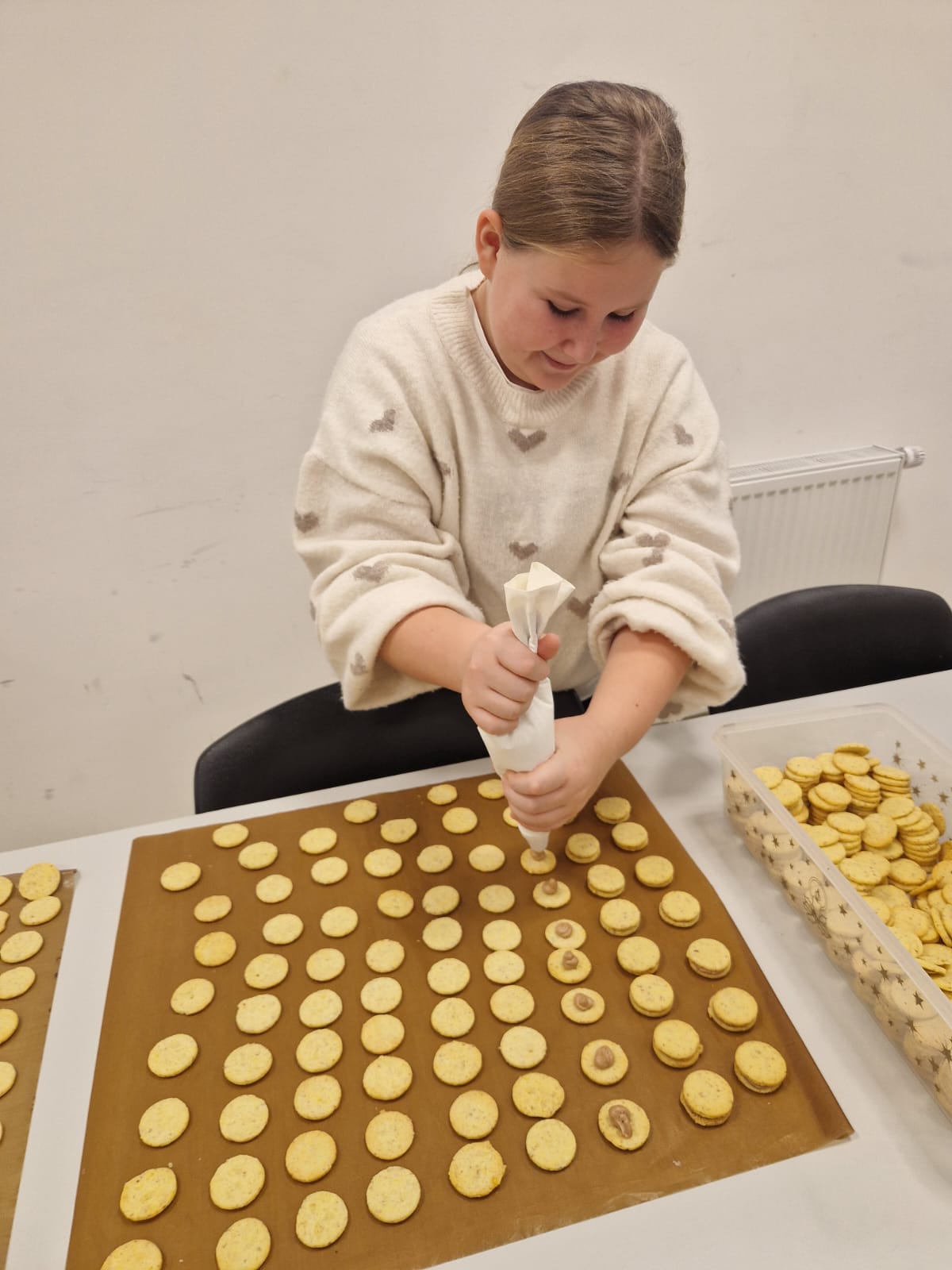 In der Schulküche entstanden unterschiedlichste Kekssorten – klassisch, kreativ, bunt gemischt. Die Schüler:innen arbeiteten konzentriert mit, kneteten, stachen aus und verzierten. Alle Kekse werden beim Adventmarkt verkauft, und der gesamte Erlös kommt direkt den Kindern zugute. Das gibt der Arbeit an dieser Station einen spürbaren zusätzlichen Wert.
