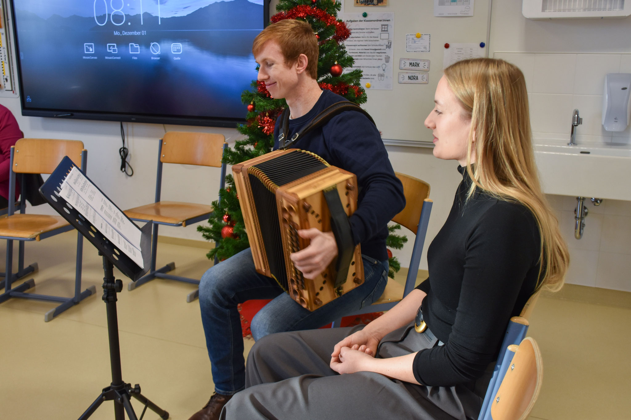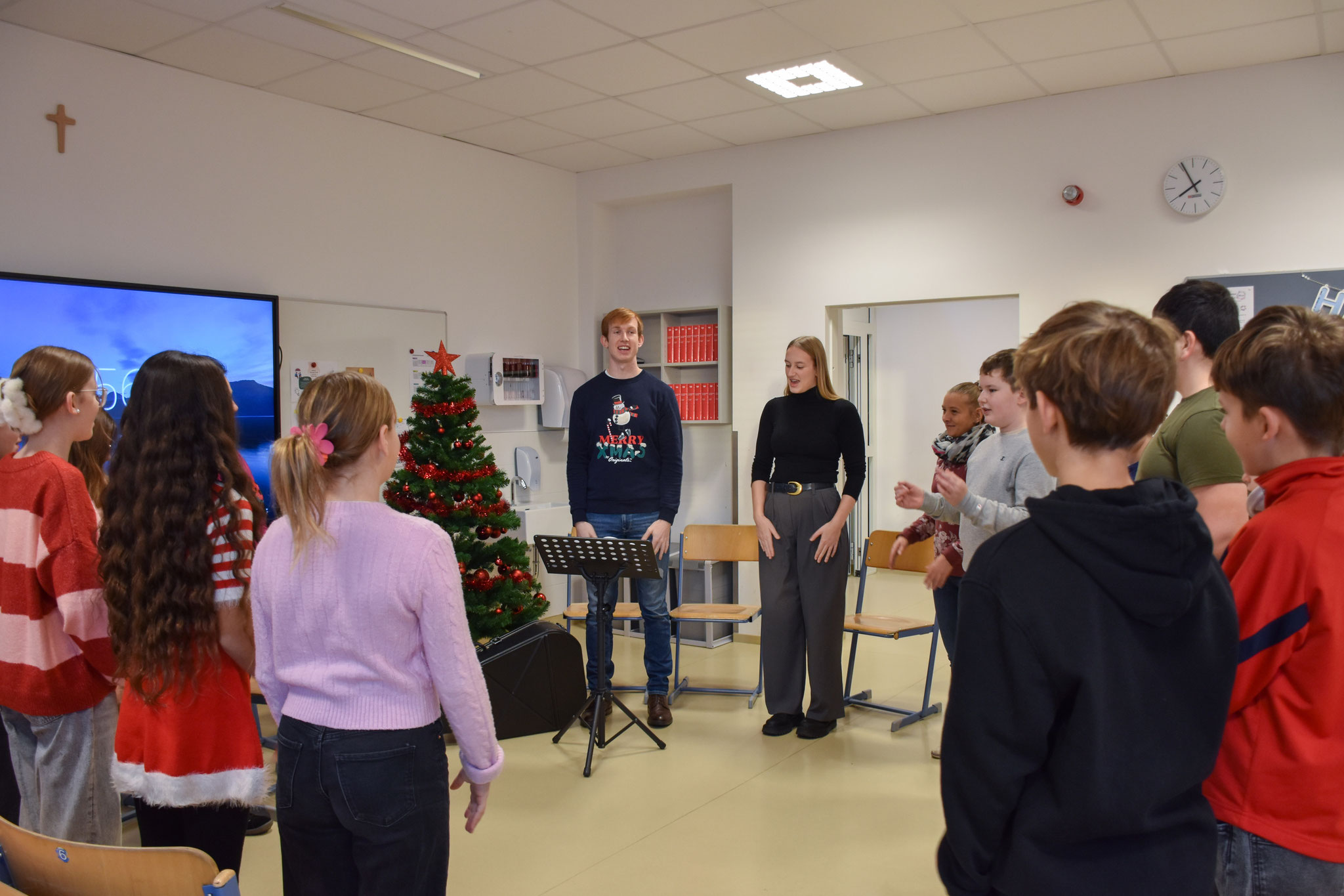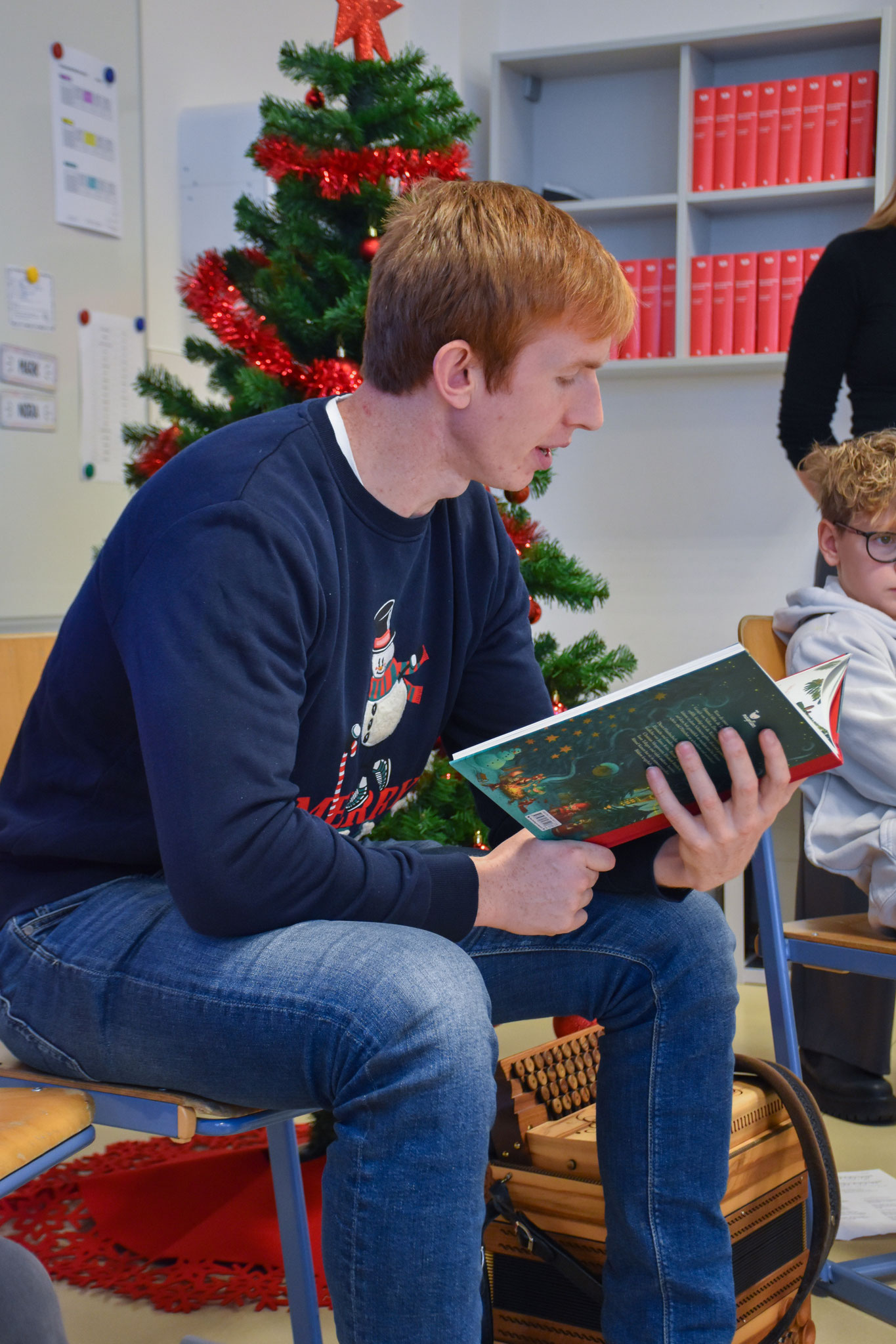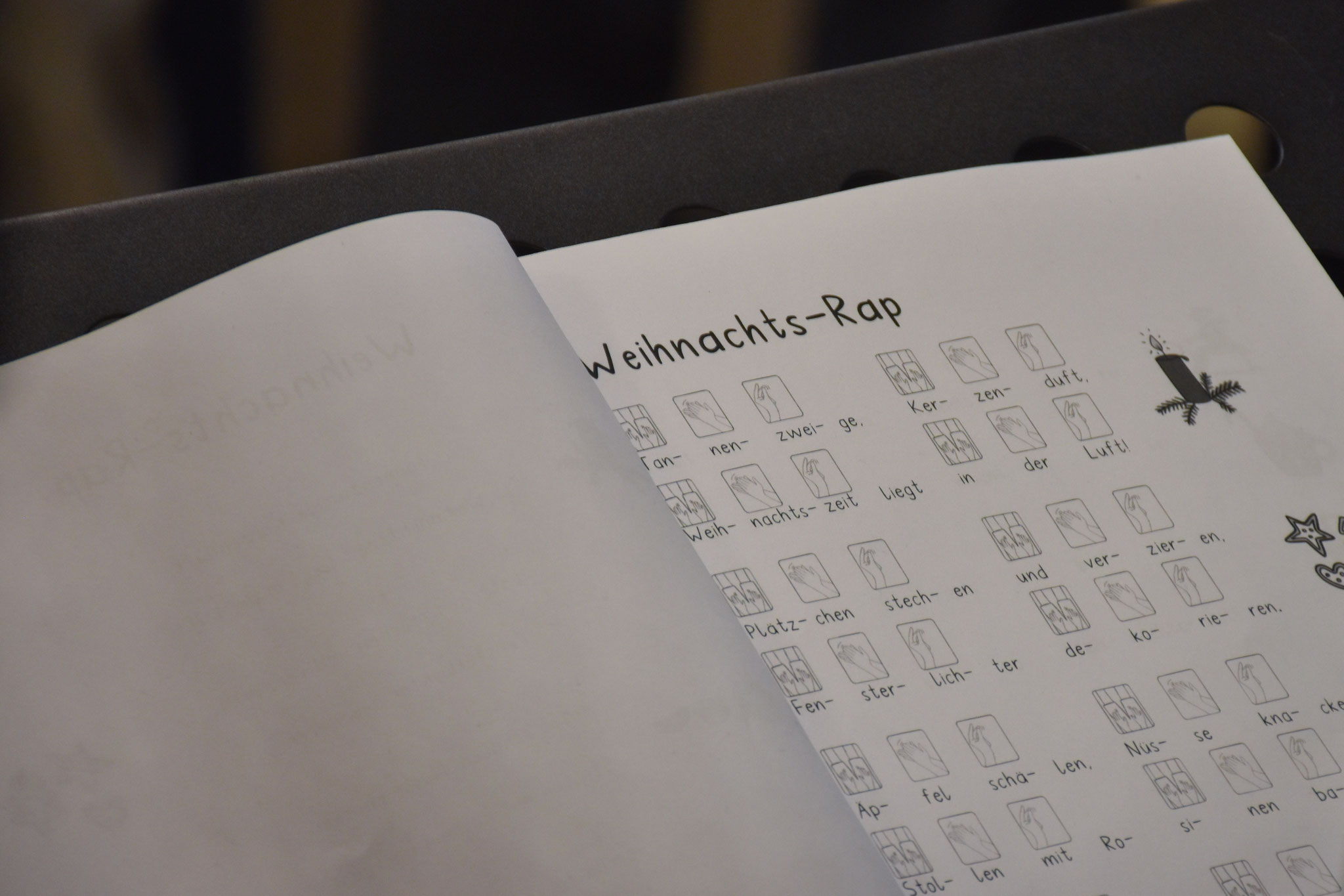 Der dritte Bereich drehte sich um weihnachtliche Texte und Musik. Eine Oma, aber auch Lehrpersonen und Schüler:innen lasen Geschichten und Gedichte vor, gemeinsam wurden klassische Lieder gesungen. Sogar ein Weihnachtsrap war dabei – ein guter Mix aus Tradition und etwas Neuem.