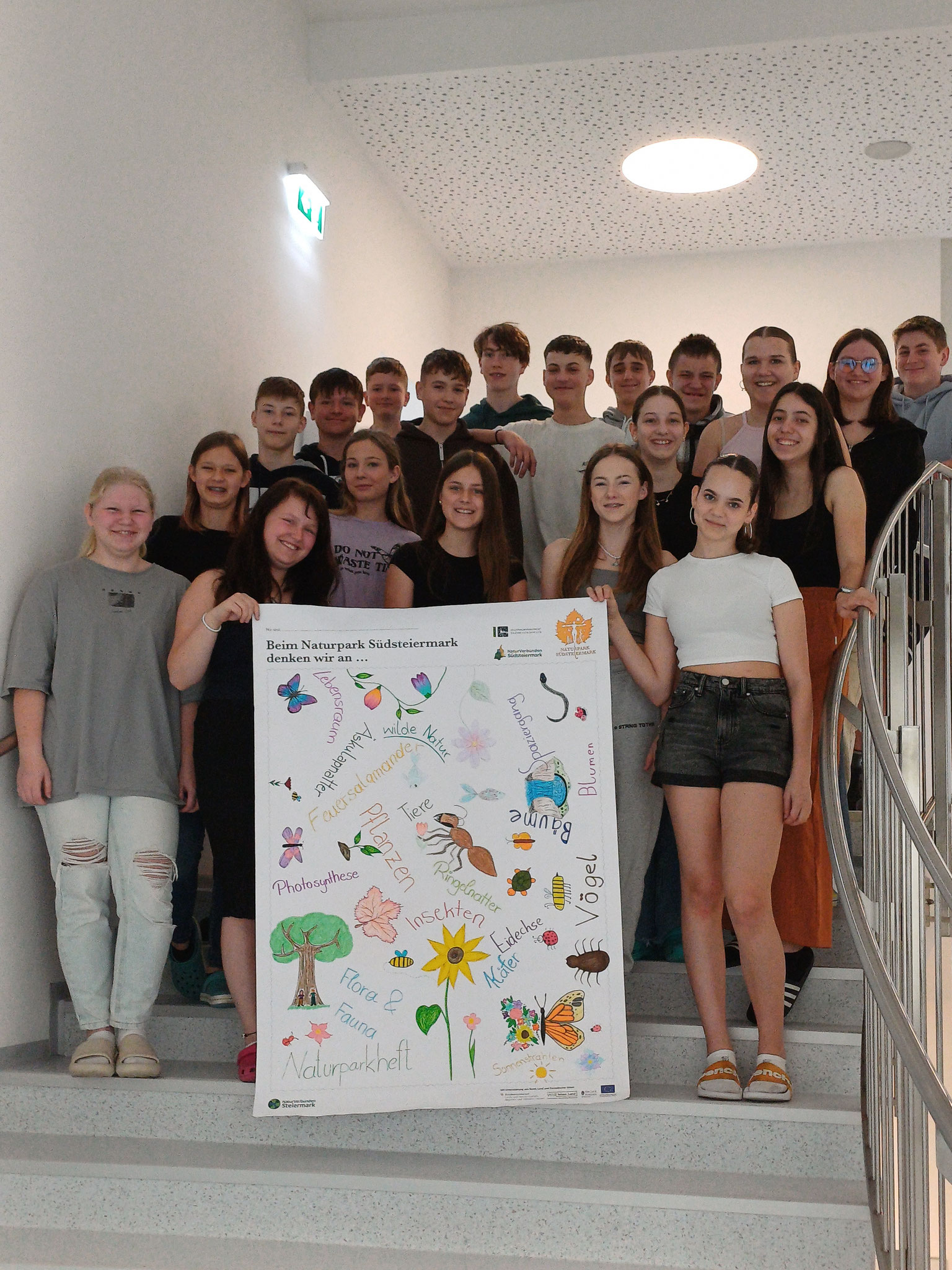 Mit der Gestaltung eines Kreativ-Plakats konnte jede Naturpark Schule des Naturpark Südsteiermark in diesem Schuljahr zur inhaltlichen Gestaltung eines Naturparkliedes beitragen. Für die MS Gleinstätten gestaltete die 4a ein wunderschönes Plakat, wobei jede Schülerin und jeder Schüler dazu einen Beitrag leistete. Eindrücke, Erlebnisse und Assoziationen bezüglich des Naturparks kamen dabei in gezeichneter und geschriebener Form zum Einsatz.