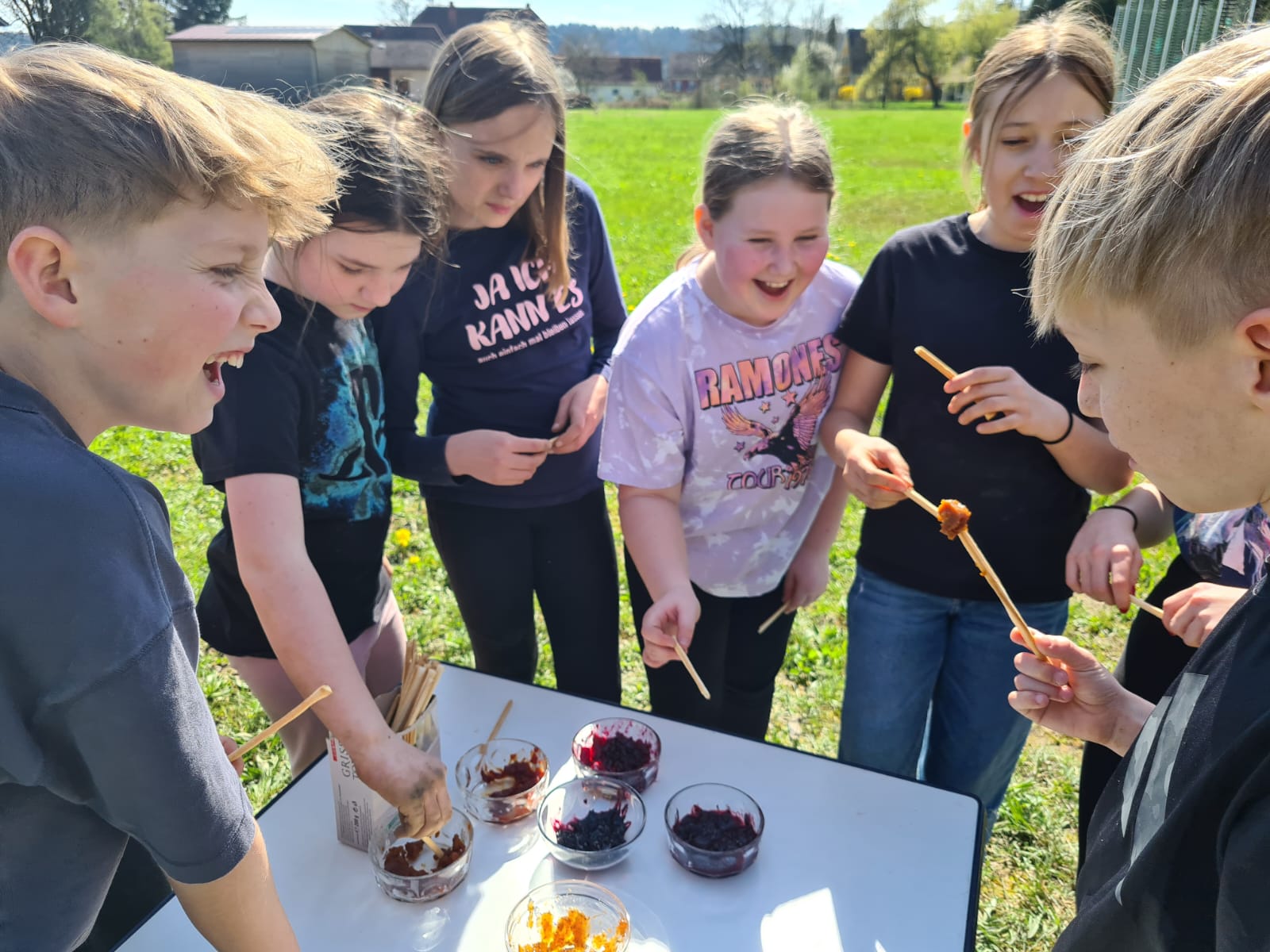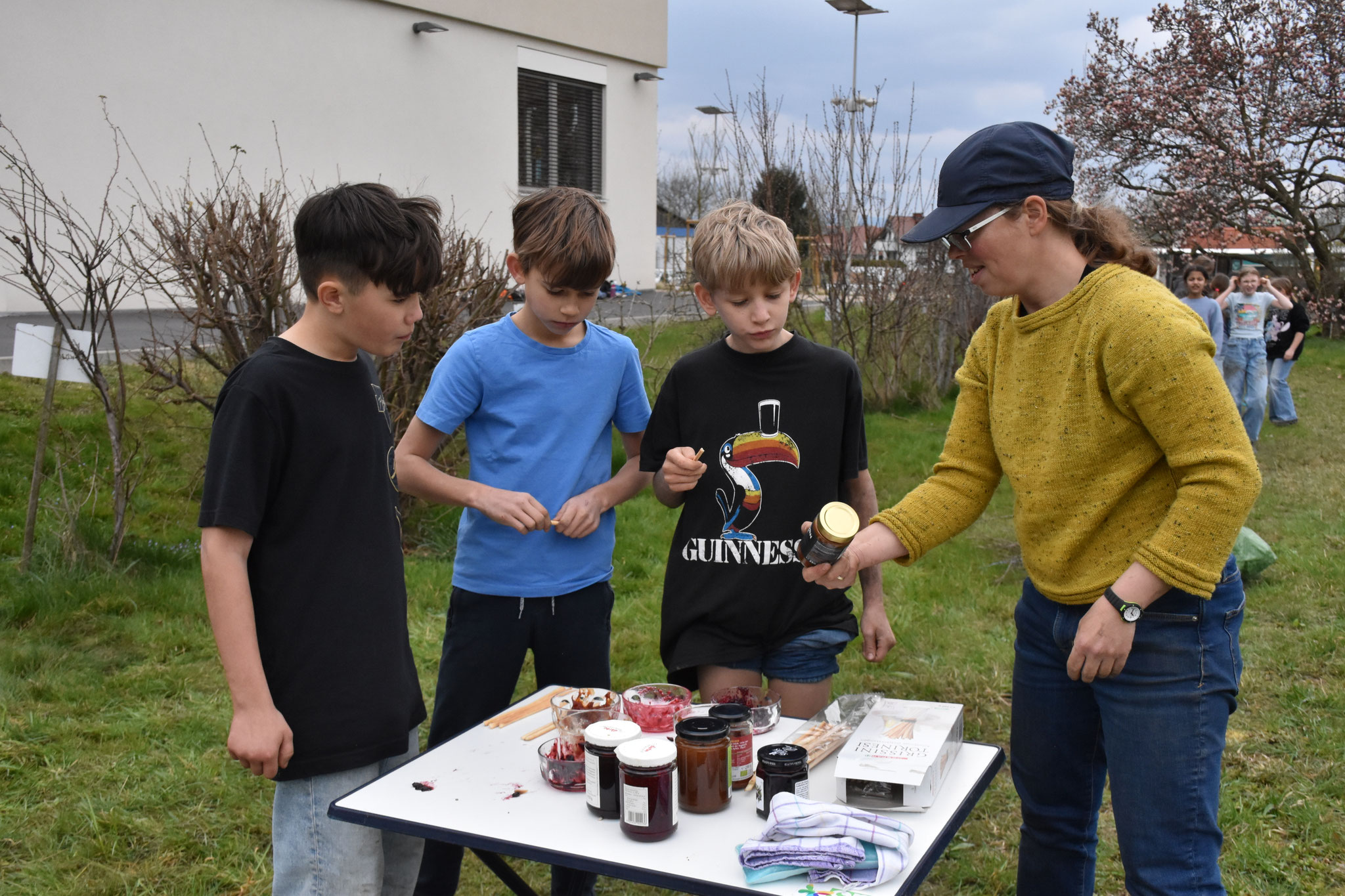 Zum Abschluss des Projekttages stand noch eine leckere Verkostung auf dem Programm: Verschiedene Marmeladen aus regionalen und saisonalen Früchten wurden angeboten. Die Kinder konnten nicht nur den Geschmack der Marmeladen genießen, sondern erfuhren auch, warum es wichtig ist, auf regionale Produkte zurückzugreifen.