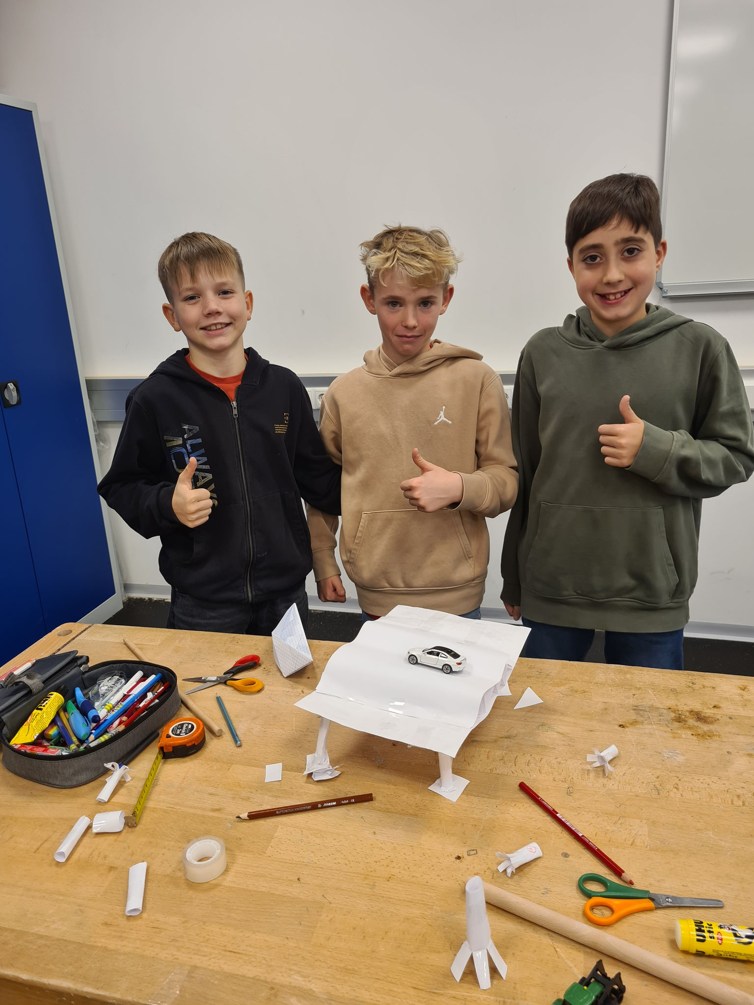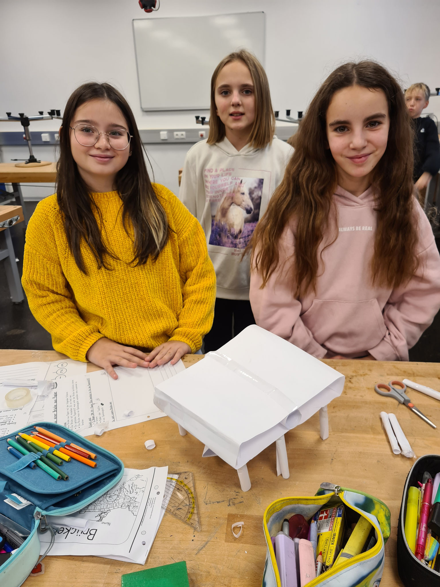 Im Fach Technik gab es einen spannenden Konstruktionswettbewerb. Ziel war es, aus Papier eine stabile Brücke zu bauen. Hier waren Kreativität, Teamarbeit und technische Raffinesse gefragt, um die Belastungstests erfolgreich zu meistern.
