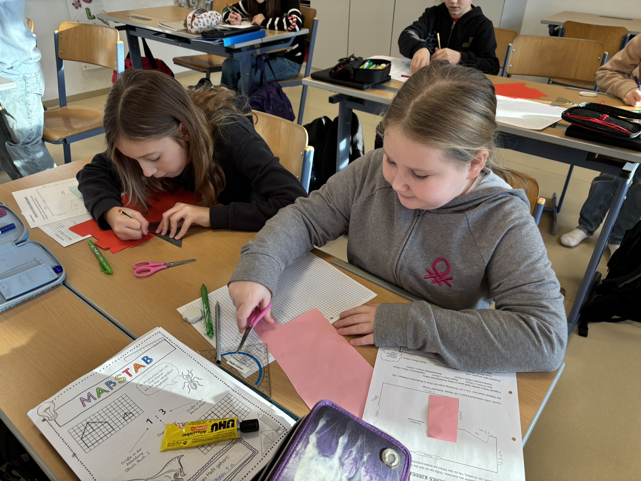 Im Fach Mathematik beschäftigten sich die Klassen mit Architektur und Raumplanung. Sie lernten, wie man mithilfe des Maßstabs präzise Modelle erstellt, und konnten dabei ihre Vorstellungskraft und Genauigkeit unter Beweis stellen.