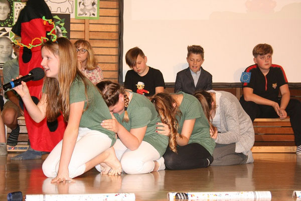 Schmetterlingswiese, Wald, Weinberge uns Streuobstwiesen sind typische Lebensräume in unserem Naturpark. Diese Bereiche szenisch auf die Bühne zu bringen, war eine kleine Herausforderung. Unter Anleitung von Frau Sabine Schlick-Kummer, Theaterpädagogin, entdeckten die Schülerinnen und Schüler ihre verborgenen Talente und lieferten eine großartige Performance, an der alle Kinder der 5. Schulstufe teilnahmen. Den gebührenden Applaus haben sie sich wirklich verdient!